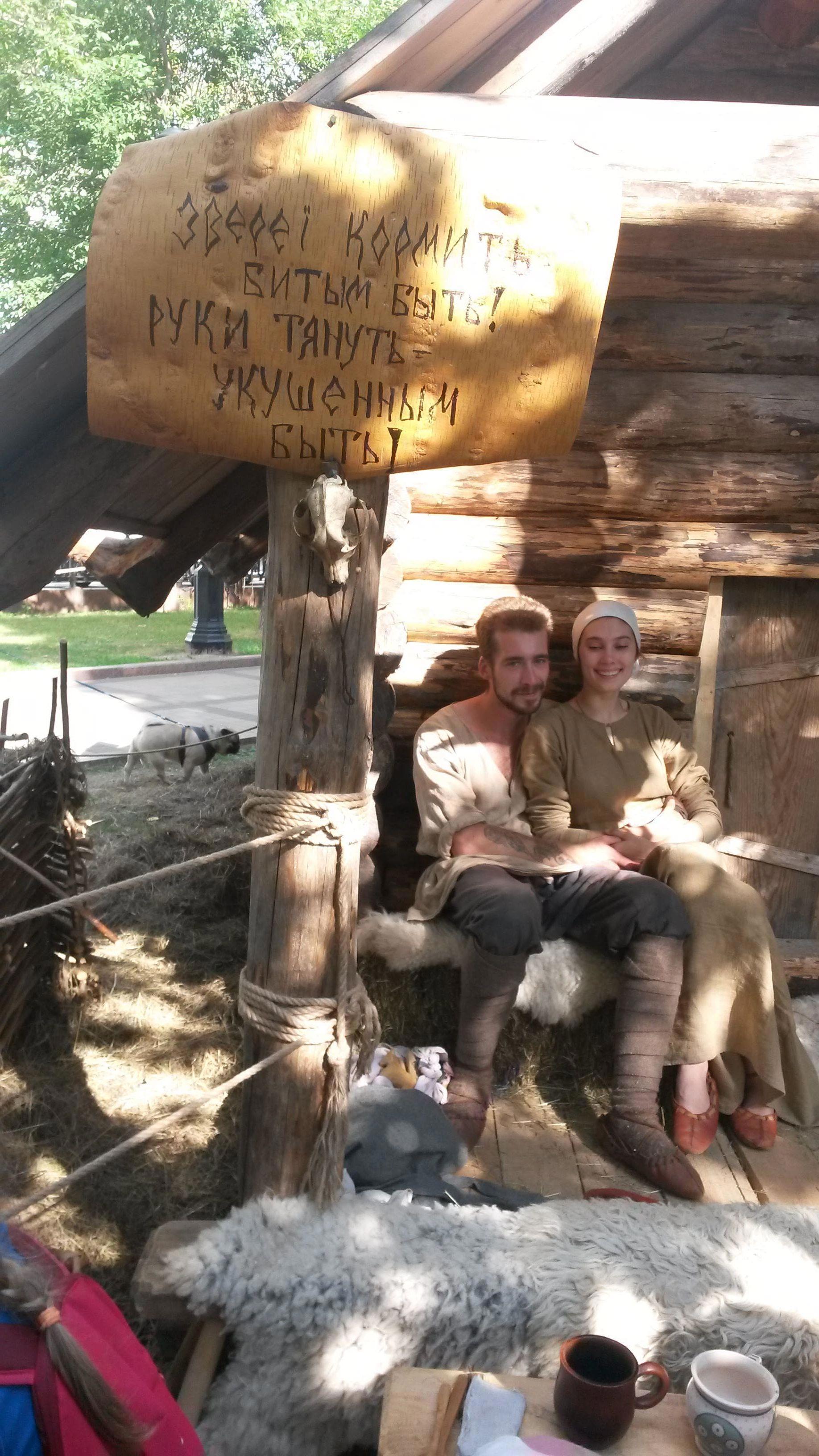 Насколько помню, этот реконструктор приехал на фестиваль из Великобритании, а срелневековая парочка - из Голландии: