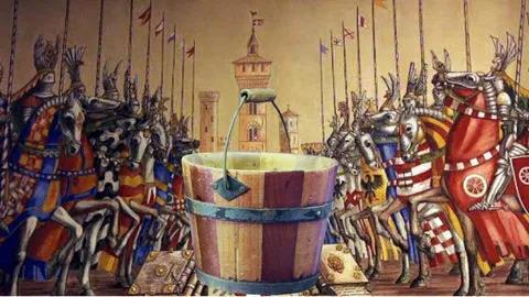 Одной чудесной итальянской ночью 1325 года дерзкие гибеллины Модены пробрались в пределы папской Болоньи с целью ограбить дома богатых гвельфов. Свою добычу они сложили в колодезное ведро и следующим утром горделиво показали трофеи землякам-моденцам. Оскорбленные болонцы потребовали выдачи ведра, являвшегося собственностью их муниципалитета, тогда как драгоценности были собственностью частной. Отказ Модены привел к войне и одному из самых кровопролитных сражений того века. Модена отстояла украденное ведро, которое до сих пор хранится в местном кафедральном соборе ….. на https://author.today/work/149923/ опубликована тридцать пятая глава романа «Его высочество Буриданов осел», шестой книги исторической серии «Kyrie Eleison».