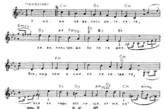 Я не буду вдаваться в глубокую теорию, а лучше попробую рассмотреть процесс транспонирования на примере отрывка из одной известной песни. Вот ноты.