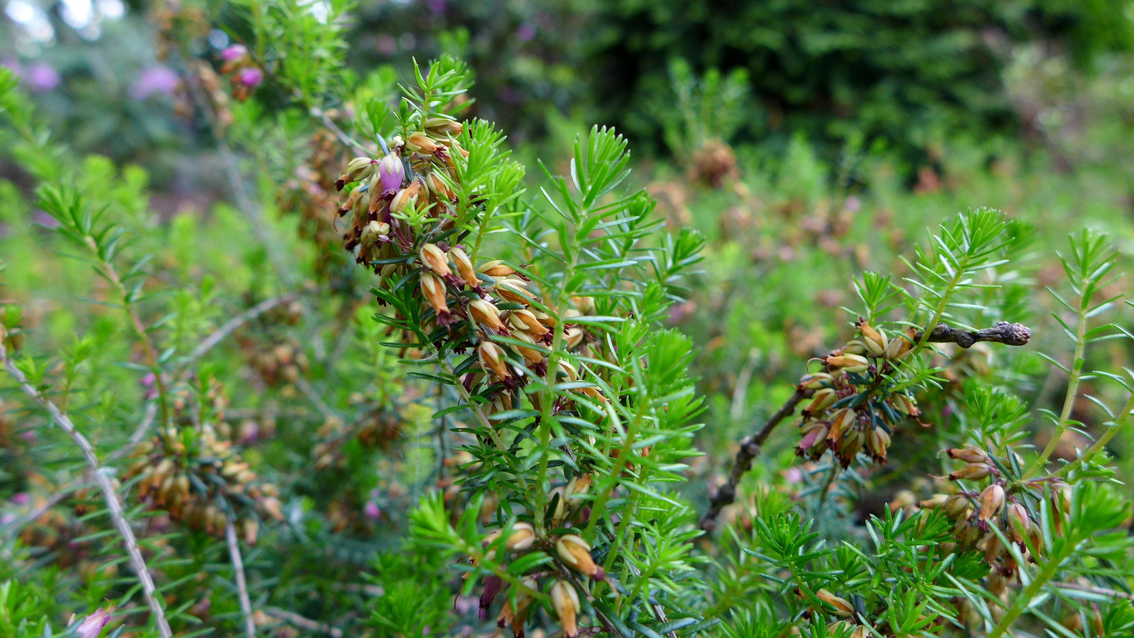 Автор: Наталья ГерценНашла еще одно место, где наверняка живут цветочные человечки. Это моё любимое, конечно: цветы во всём их разнообразии, во всей красоте. Удалось увидеть, что вот-вот зацветет белый пион. Да не один. Их там – почти маленькое море. Впервые удалось посмотреть, как цветет вереск. Начинает зацветать. Появился среди колких листьев торжественный первый розовый колокольчик. Сразу на ум приходит баллада Р. Стивенсона «Вересковый мёд» в переводе С. Маршака. Детское, далёкое, таинственное: