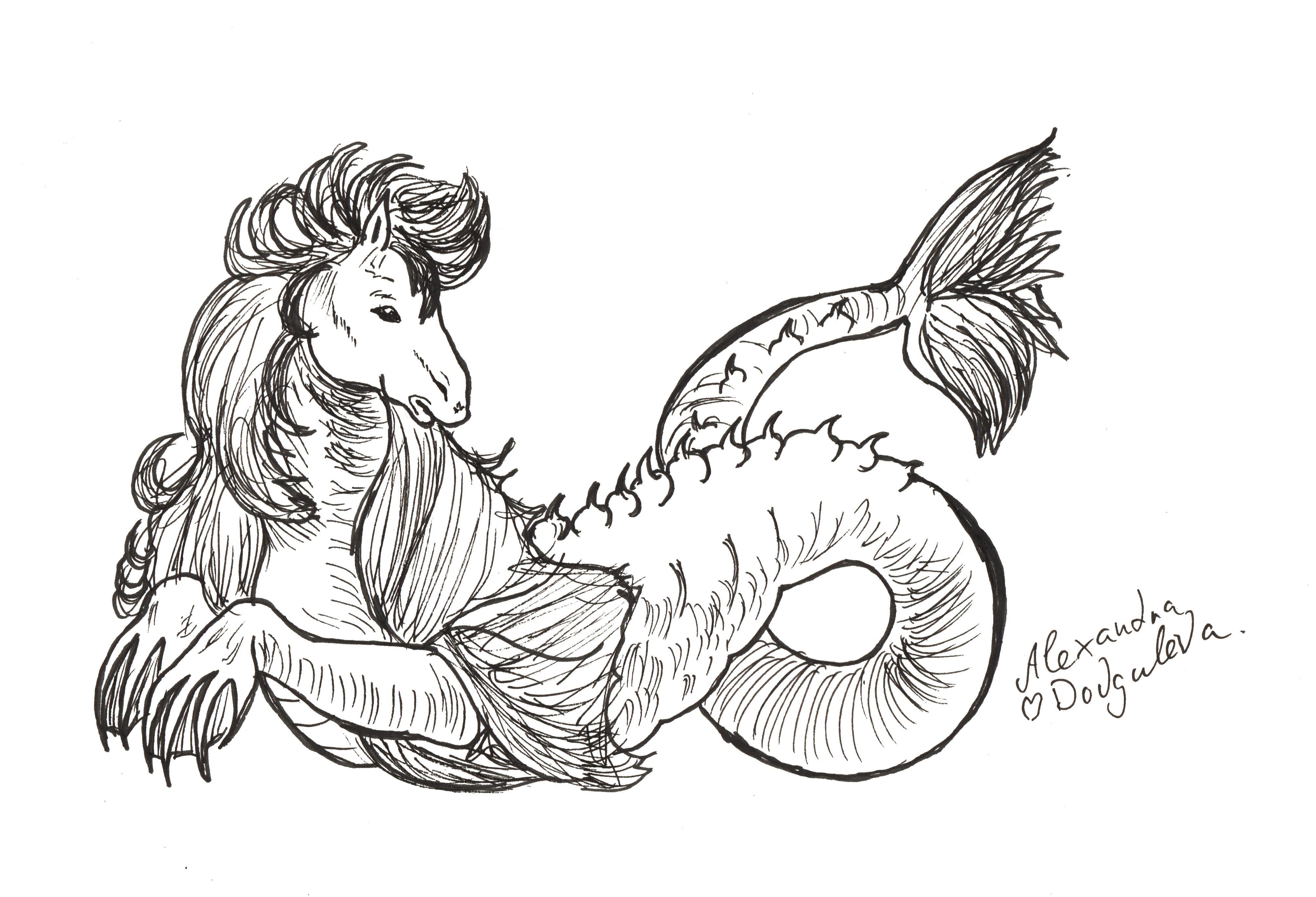 Этого морского коня я рисовала для того, чтобы "уловить" стиль картографов средневековья. Отличный у них почерк! Совершенно волшебный...