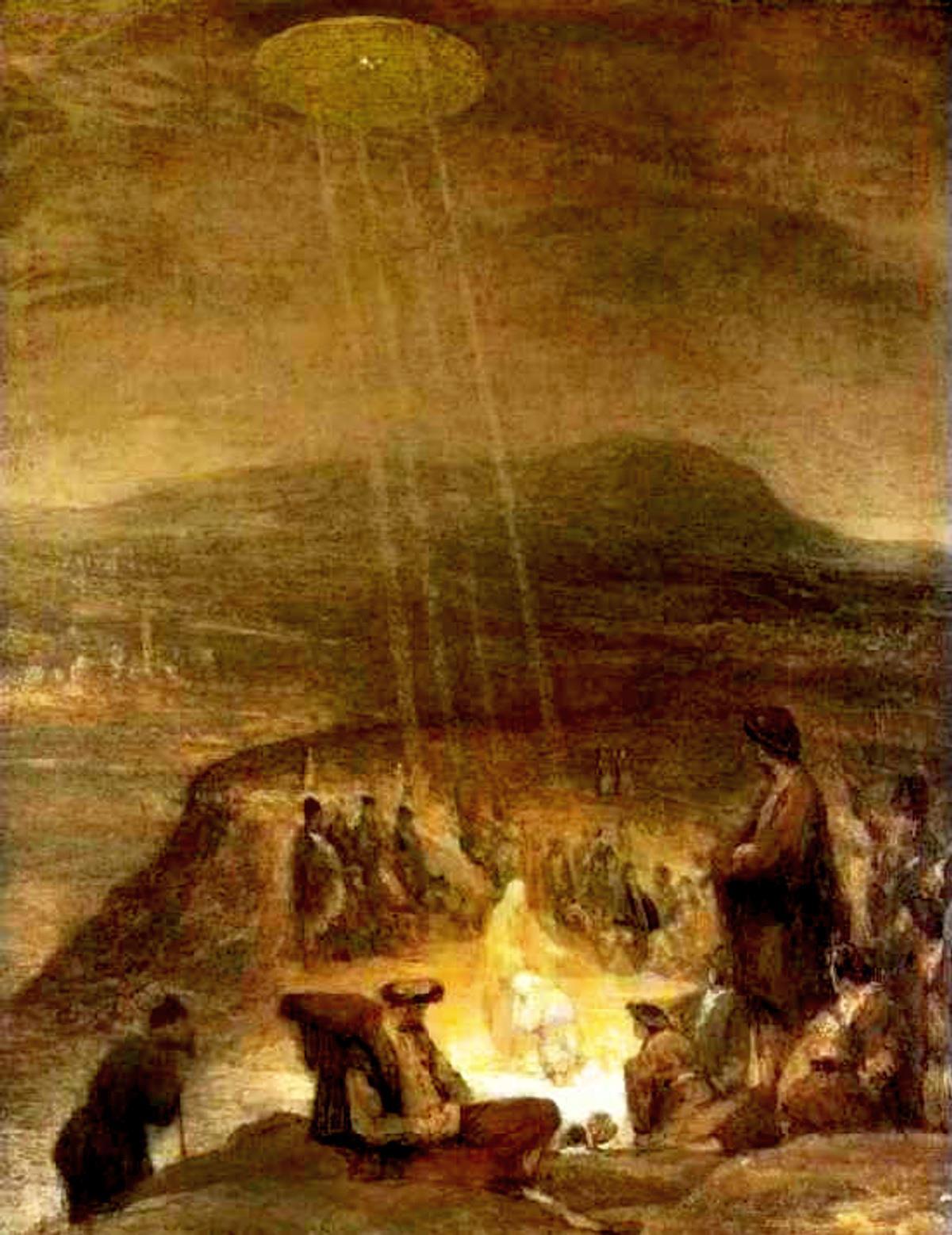 Воистину выглядит более, чем странно, однако прошу понять меня правильно – я всё же инженер. То есть человек, которому эмоции в принципе противопоказаны. И формальная логика заставляет меня, скажем так, сильно сомневаться в наличии инопланетных кораблей в нашем небе в старые времена. Поэтому ракеты с летающими тарелками оставляю на потом, и просто смотрю на то, что нарисовал художник.