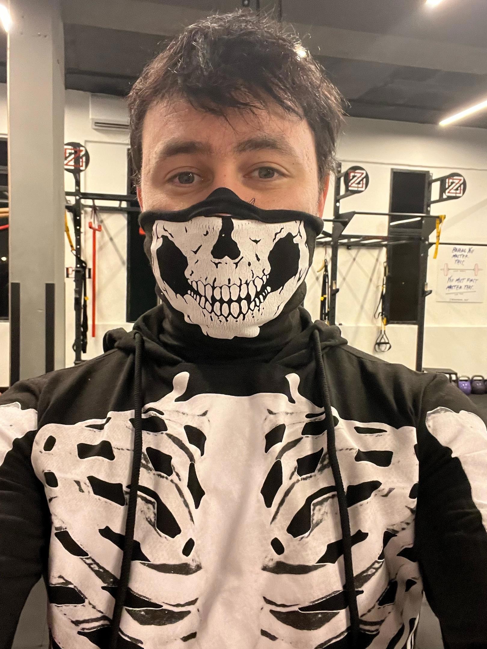 И да! На спорте у меня костюмчик скелетика, с порванной маской) Печалька.