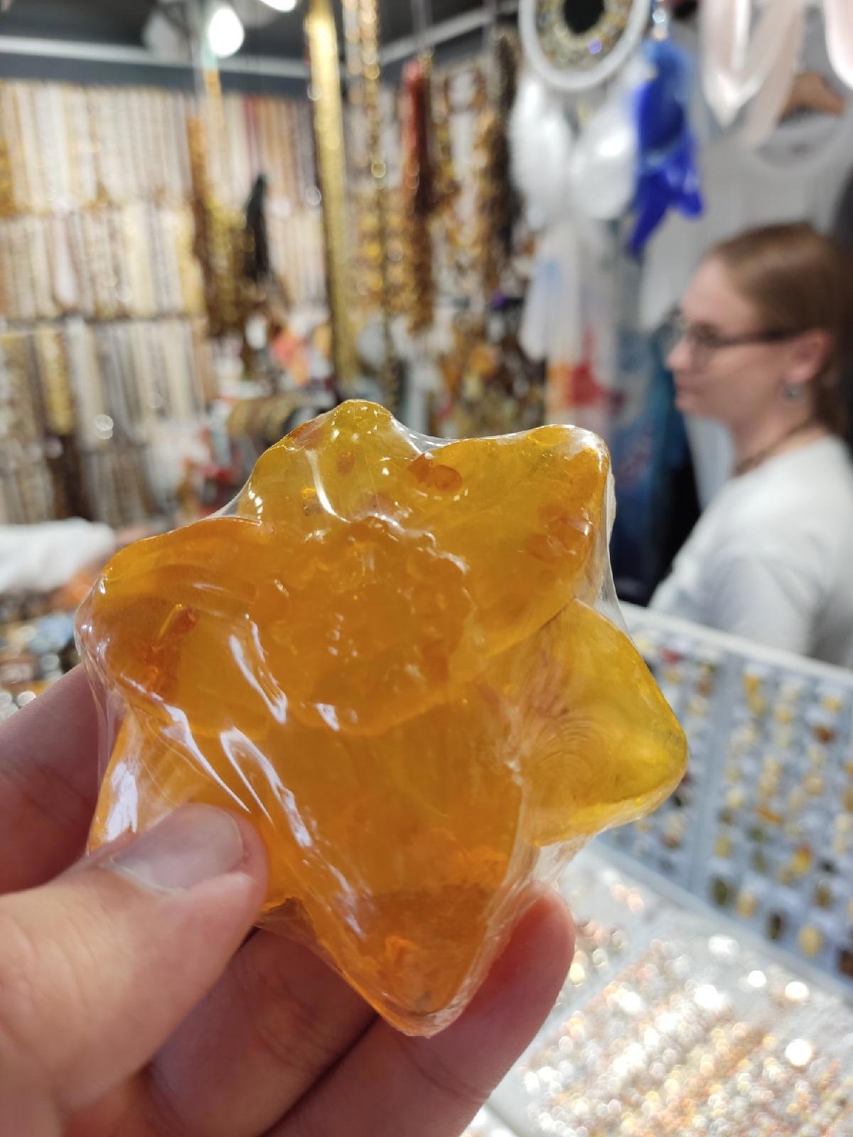 Первым героем новой рубрики стала девушка, работающая в сувенирной лавке. Я искал янтарик для подруги, поэтому зашёл в вышеупомянутое место и купил там красивый камешек, носящий фэнтезийное название — "Кровь дракона". Общительность и располагающая улыбка нашей героини стали знаком.