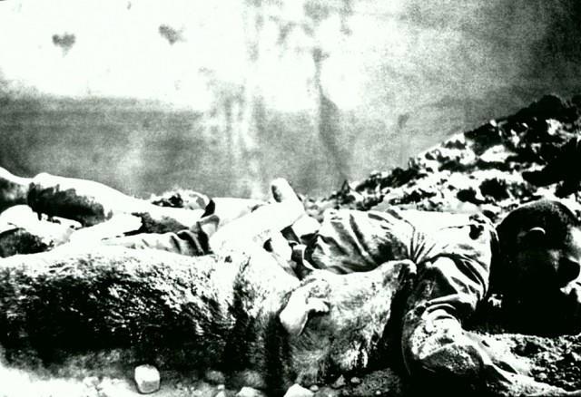 Погибшие в неравном бою пограничник и его верная собака. Брестская крепость