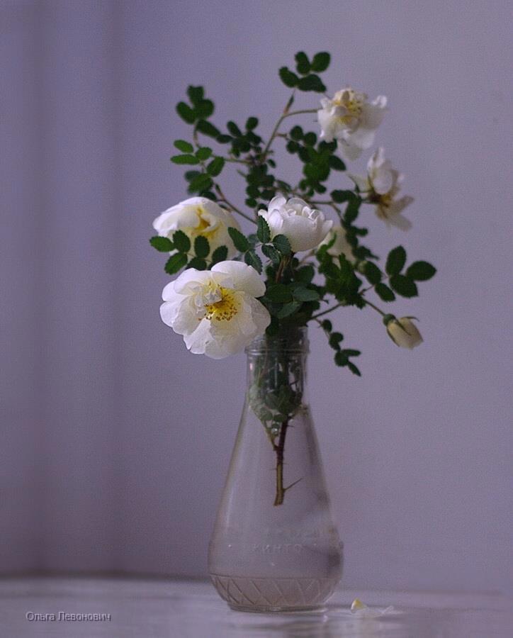 Вчера, наконец, решилась сломать веточку шиповника с куста напротив магазина. Веточка оказалась очень колючей, но отломилась легко. Чтобы не нести в руках, уложила её в пакет с продуктами. Вроде несла бережно, но цветы всё равно нароняли в сумку лепестков.