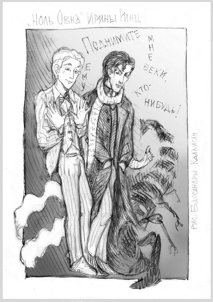 Эту иллюстрацию я рисовала по общим впечатлениям от героев, но Ирина любезно нашла подходящий отрывок текста.