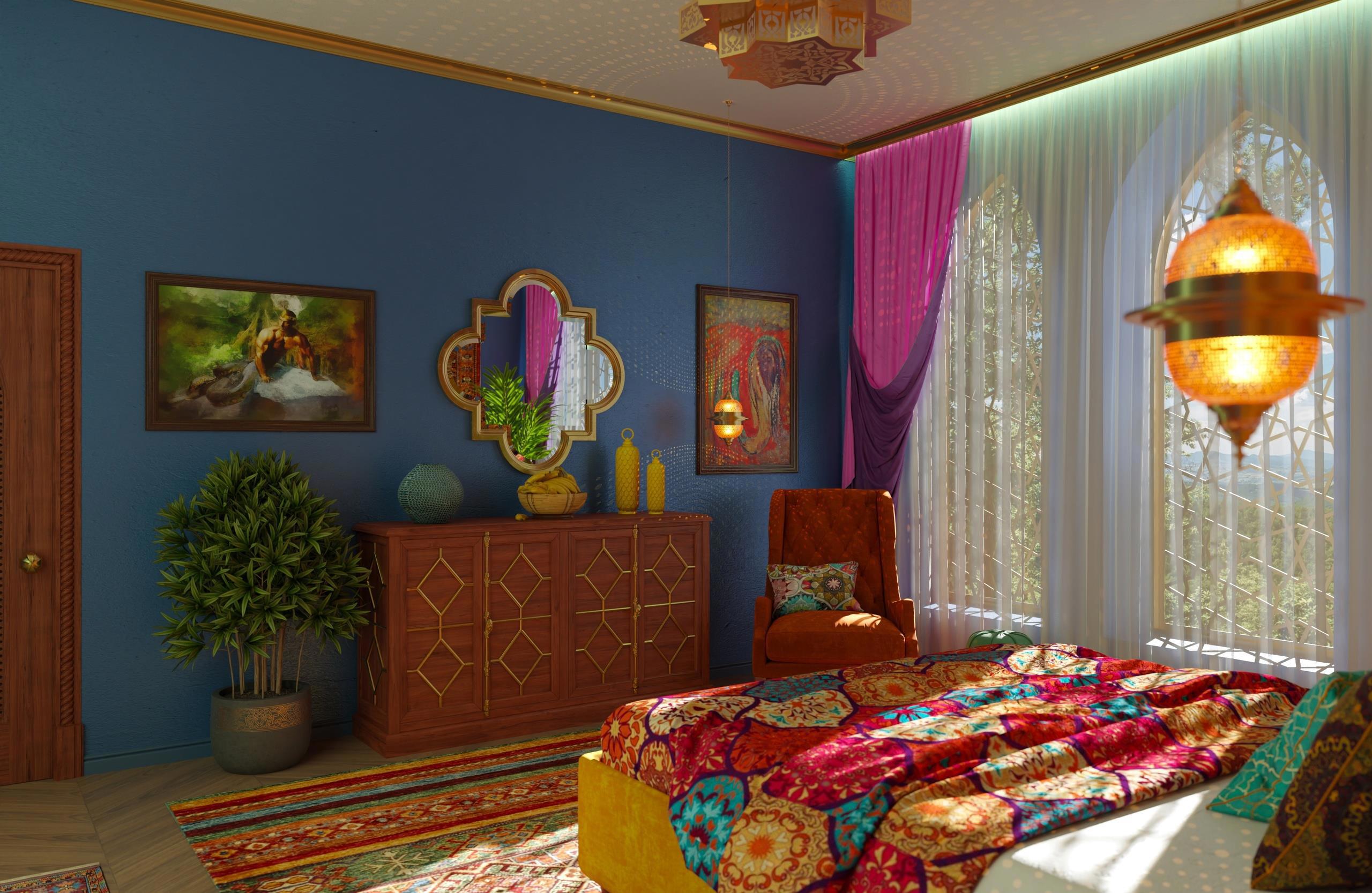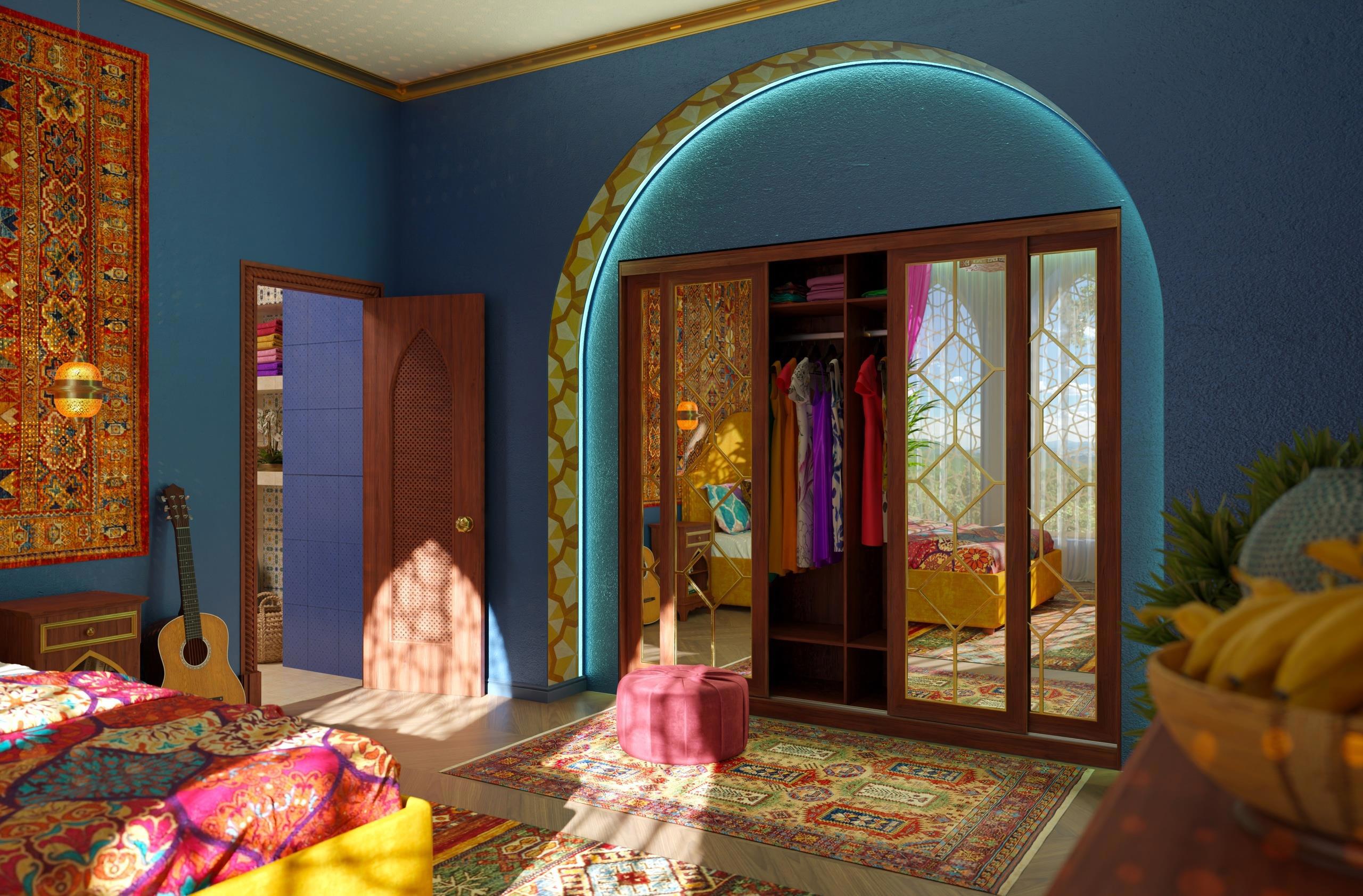 Это визуализация комнаты Вареньки - главной героини романа “Берегите хвост, Ваше Величество!”, вынужденной жить в цветовом хаосе дворца нагов, которые любят поярче да позабористей.