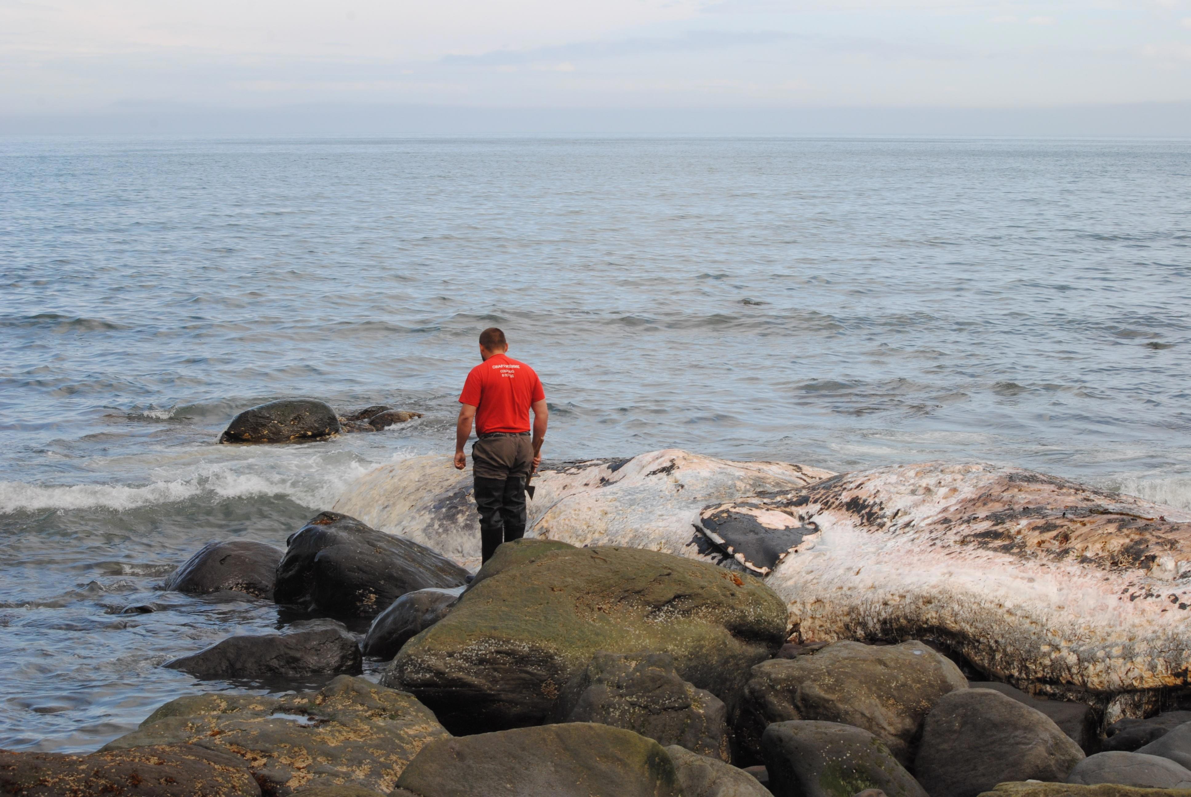 Автор: Рагимов МихаилНа днях на остров выкинуло мертвого кашалота. Тело застряло на камнях возле военного городка пограничников. Заповедник в моем лице мимо пройти не сумел. Для коллекции надоть, да и вообще!