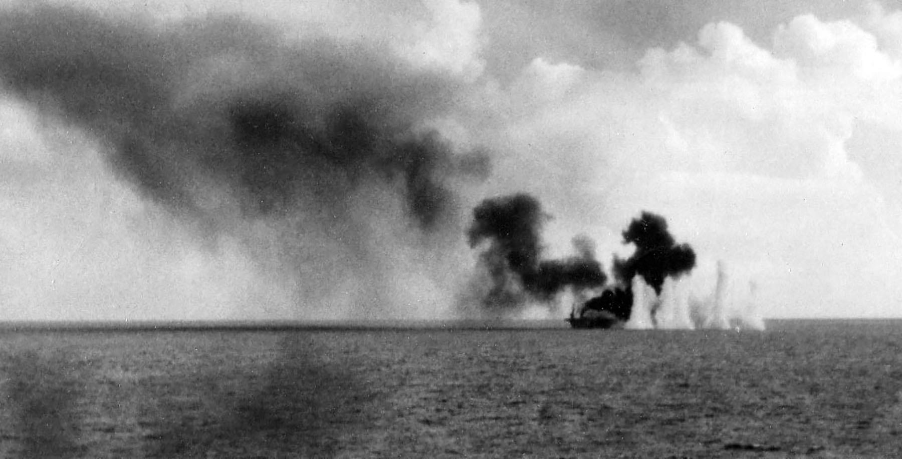 Японский камикадзе, то ли раненый, то ли просто не сумевший зайти на цель, пролетел над волнами точно между двумя кораблями – эскортным авианосцем "Натома Бей" и линкором "Вест Вирджиния". И если артиллеристы линкора огонь в сторону "своего" корабля вести не рискнули, то пушкари "джипа" принялись палить из всего, что могло стрелять. Как вспоминал один из участников боя: "80% наших снарядов попадало прямо в линкор, а еще десять рикошетили в него от воды".