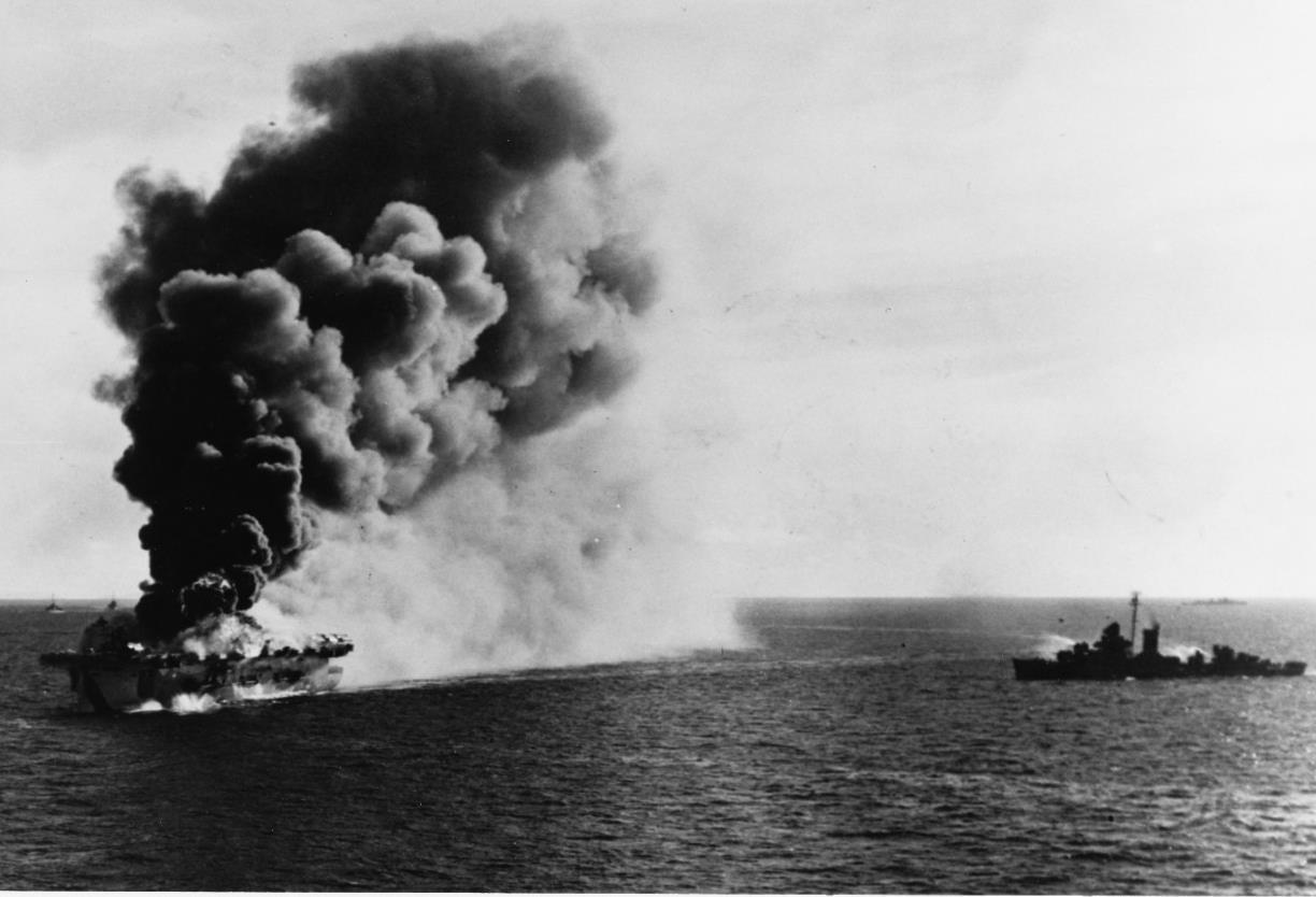 Приличный европейский флот при таком раскладе немедленно бы самозатопился, поскольку воевать все равно не светят, а так хоть матросы (те, кто доплывут до берега) в пехоте повоюют. Но психи с CVE топиться не стали, а начали поднимать самолеты. Бомб и торпед хватило не всем, поэтому часть истребителей просто стреляла по линкорам из пулеметов, а когда патроны кончались – просто жужжали над головой.