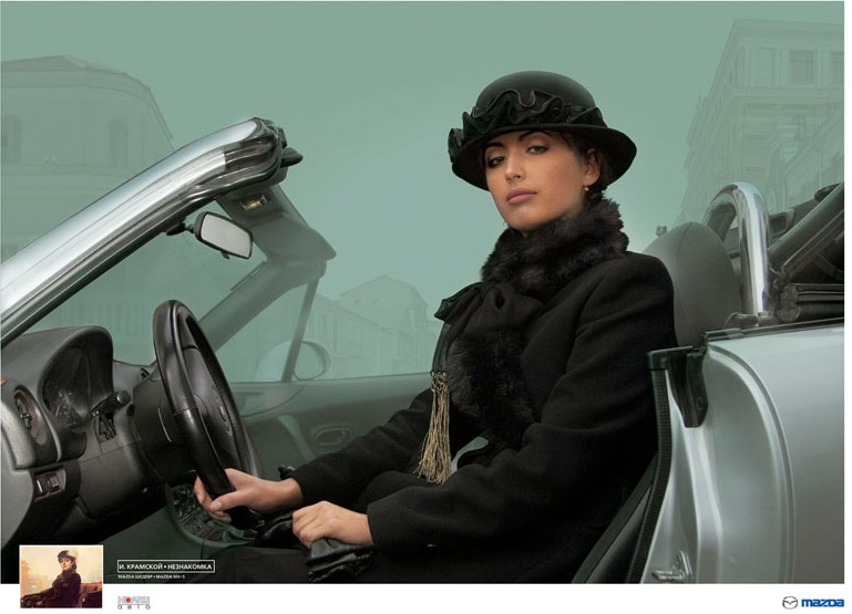 Образ молодой женщины за рулем кабриолета был использован советским художником Ю. Пименовым в 1937 году, его картина называется «Новая Москва». Пименовская героиня изображена как будто бы в качестве актрисы, исполняющей нужную роль. Это роль «новой женщины» – москвички, образованной, обеспеченной, благополучной, технически продвинутой, самостоятельной – все это должно было указывать на высокий уровень жизни, урбанизацию, равноправие полов и другие «великие достижения» советского государства. Такой образ символизировал модернизацию, благосостояние, прогресс и гендерное равенство. Женщина одновременно рекламировала автомобиль как предмет потребления и советский строй как основу гражданской идентичности.