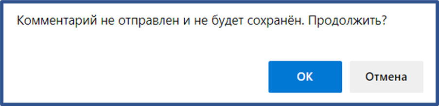 И предупреждение о том, что комментарий не сохранён (срабатывает при попытке перейти по другой ссылке с открытым полем ввода комментария):