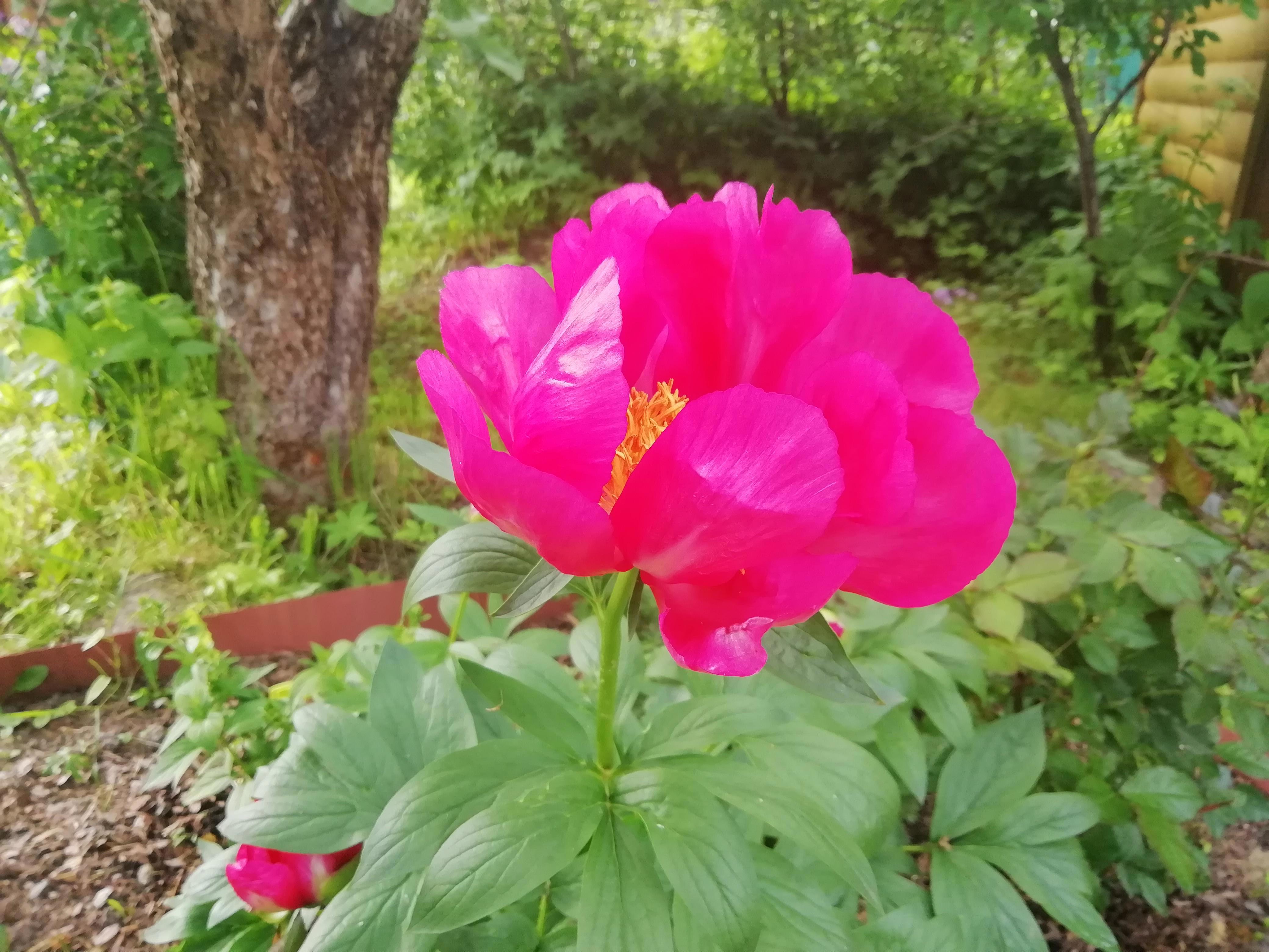 Сегодня раскрылся первый цветок пиона. Два года не подавал признаков жизни, а в этом году попёр так, что скоро задушит всё, что растёт рядом с ним: