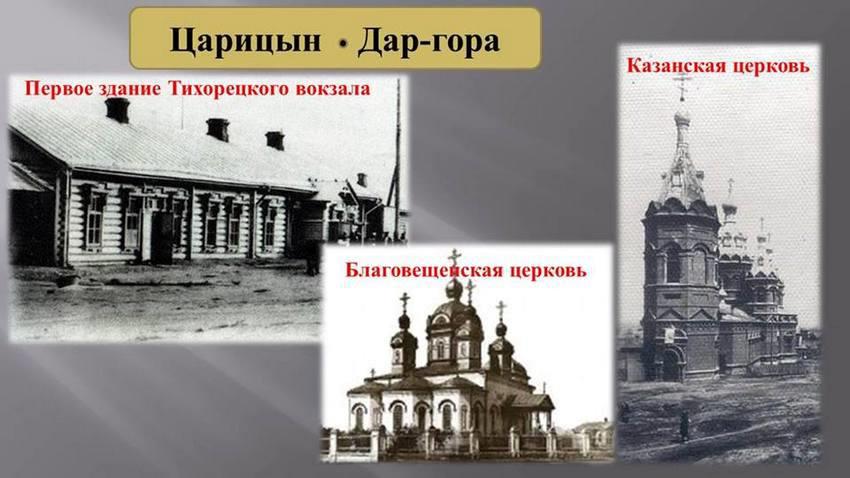 Можно себе представить, какой головной болью для властей была эта территория заселённая неблагонадёжным народом, часто поддерживавшим всевозможные восстания и бунты. Причём, находится она на естественном возвышении, из-за чего и стала "горой", и лишь в конце девятнадцатого века была отделена железной дорогой. Третья (после Волго-Донской и Грязе-Царицынской) царицынская железная дорога получила название Тихорецкой (южное направление) линии, её строительство было завершено в 1897 году, а в 1898 она была соединена с Грязе-Царицынской (северное направление) виадуком через Царицу - https://author.today/post/194798 . Разумеется, был нужен и вокзал. Первый Тихорецкий вокзал Царицына был деревянным и одноэтажным. Сохранилась только одна открытка с его видом: