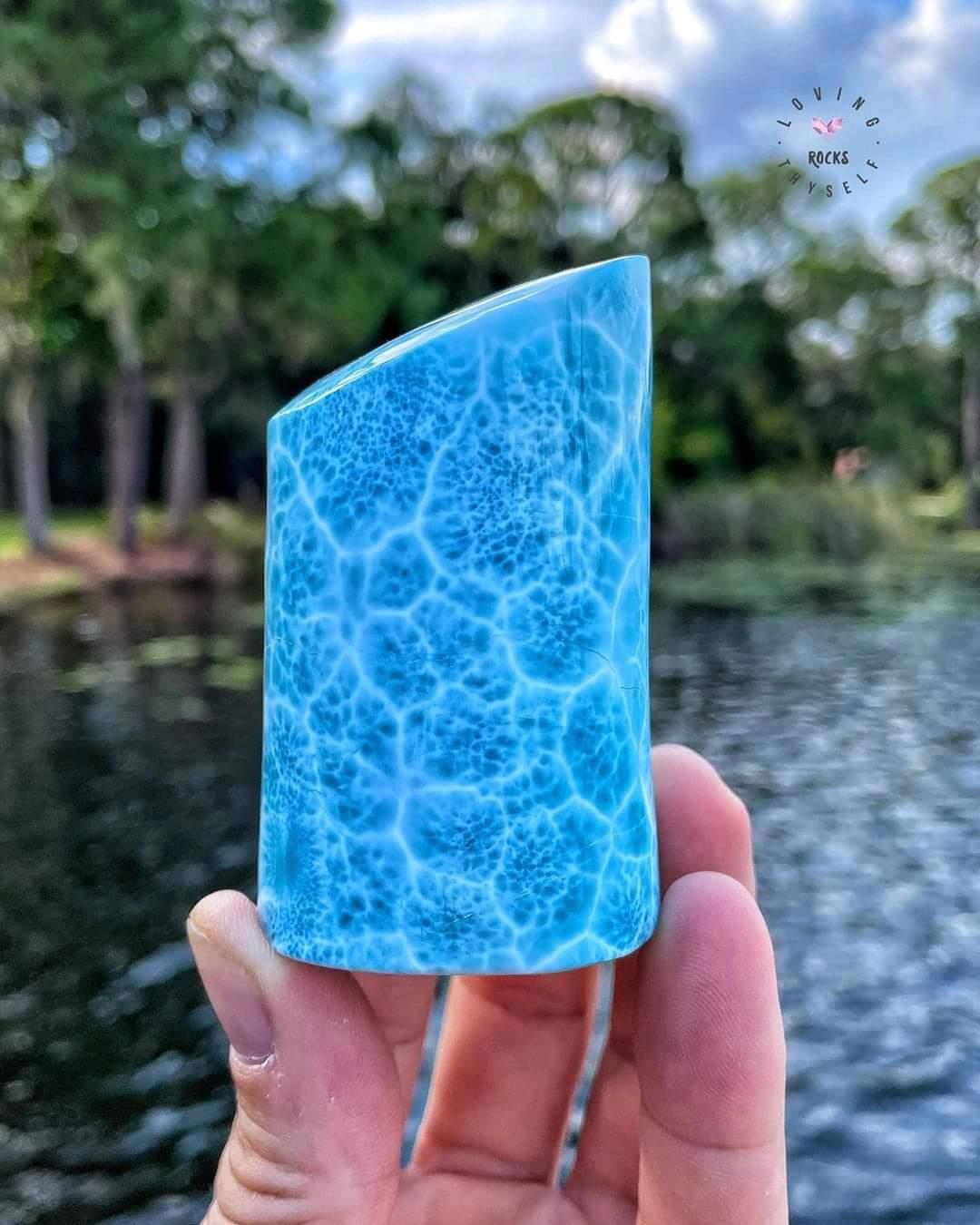 Ларимар – это разновидность пектолита вулканического происхождения с уникальной палитрой сине-голубых оттенков. Это силикат кальция и натрия, который соединяется с гидроксильной группой.