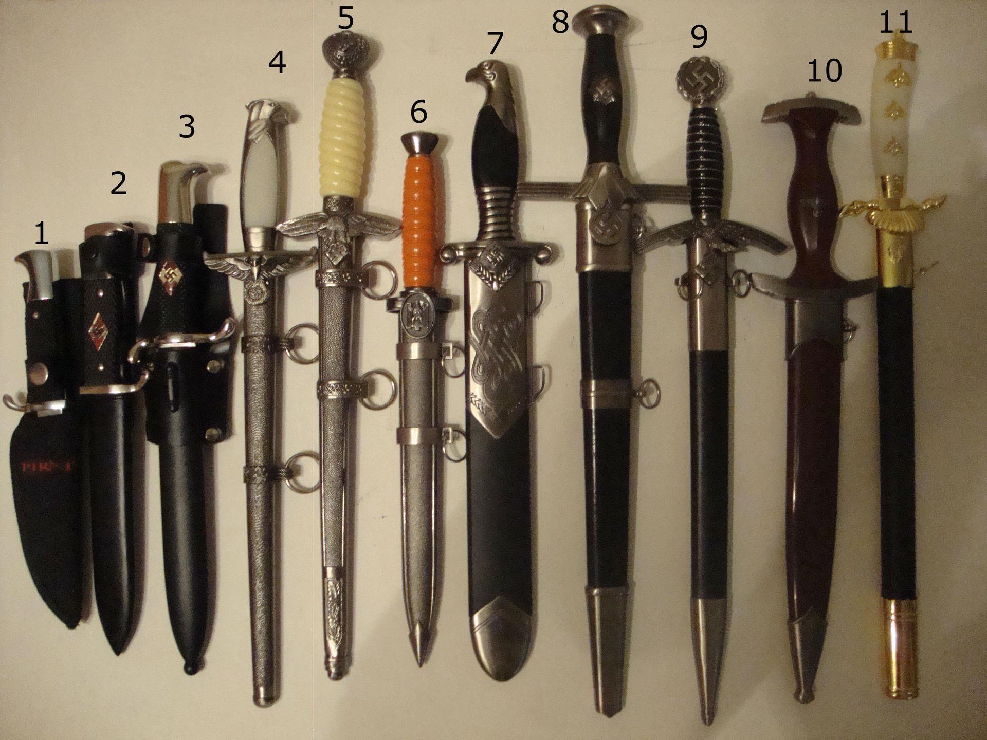 7 - орочий рядового состава РАД. ну а дальше - морской кортик, еще люфтваффе, 10 - СА и СС и 11- вроде как опять же кинжал организации лесничих.