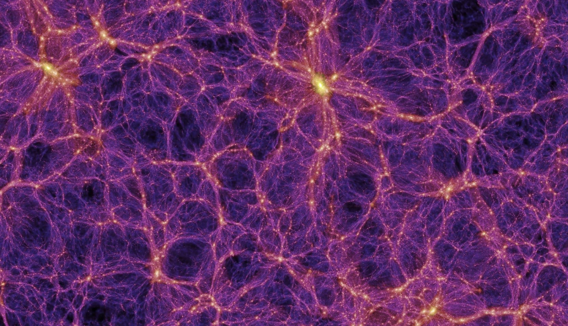 Вся материя кучкуется в складках и неровностях пространства. Все наши планеты, звезды галактики стягиваются в этим морщинки. Ну как-то так…