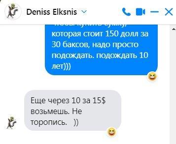 А сегодня разговорилась в личке с дорогим интернет-другом о том, о сем. У нас все просто. Мы оба Овны. У нас даже творческий дуэт есть, "Золотое вруно" называется. Я и говорю: "Зачем покупать сумку за 150 долларов, если ее можно купить за 30. Надо только подождать. 10 лет"