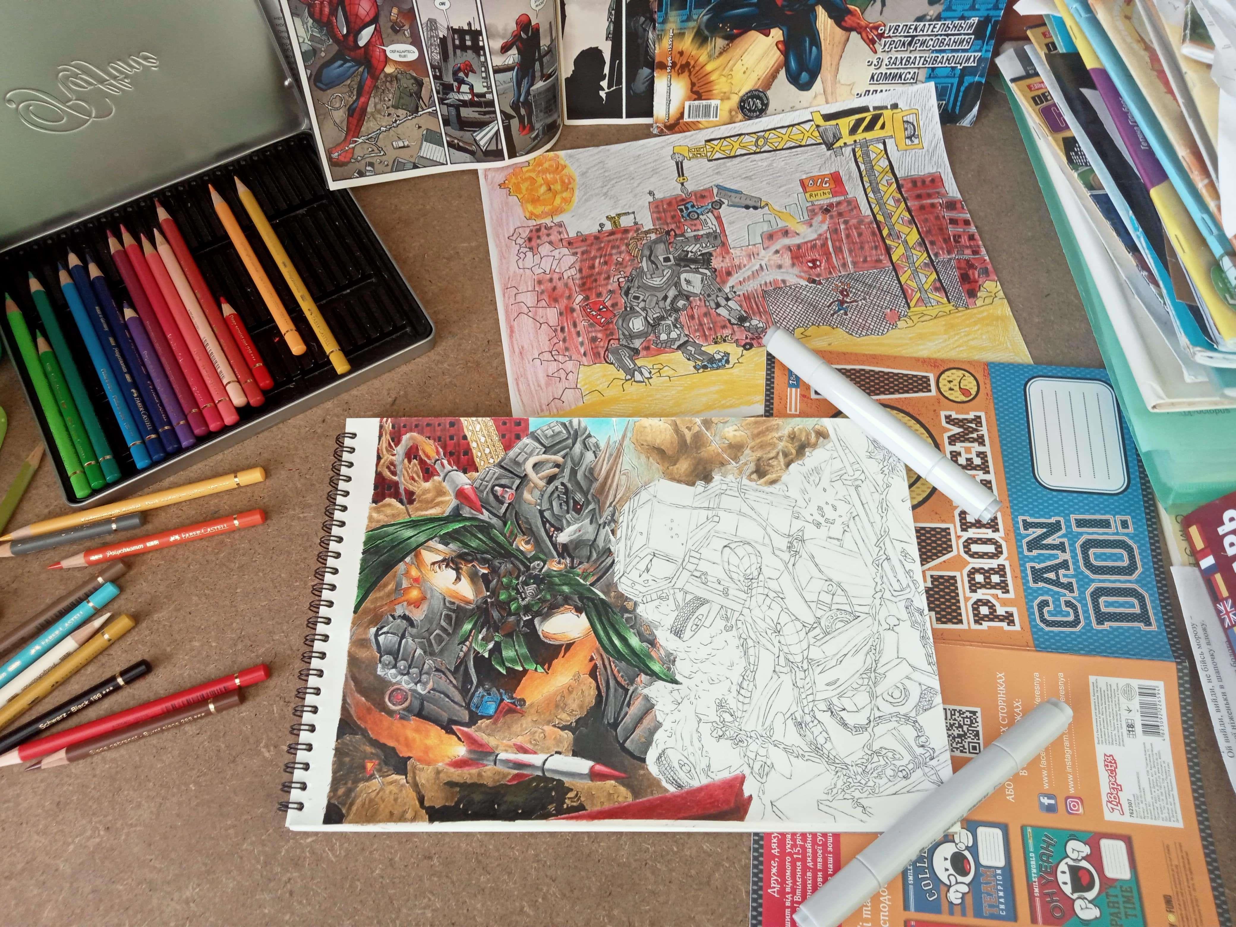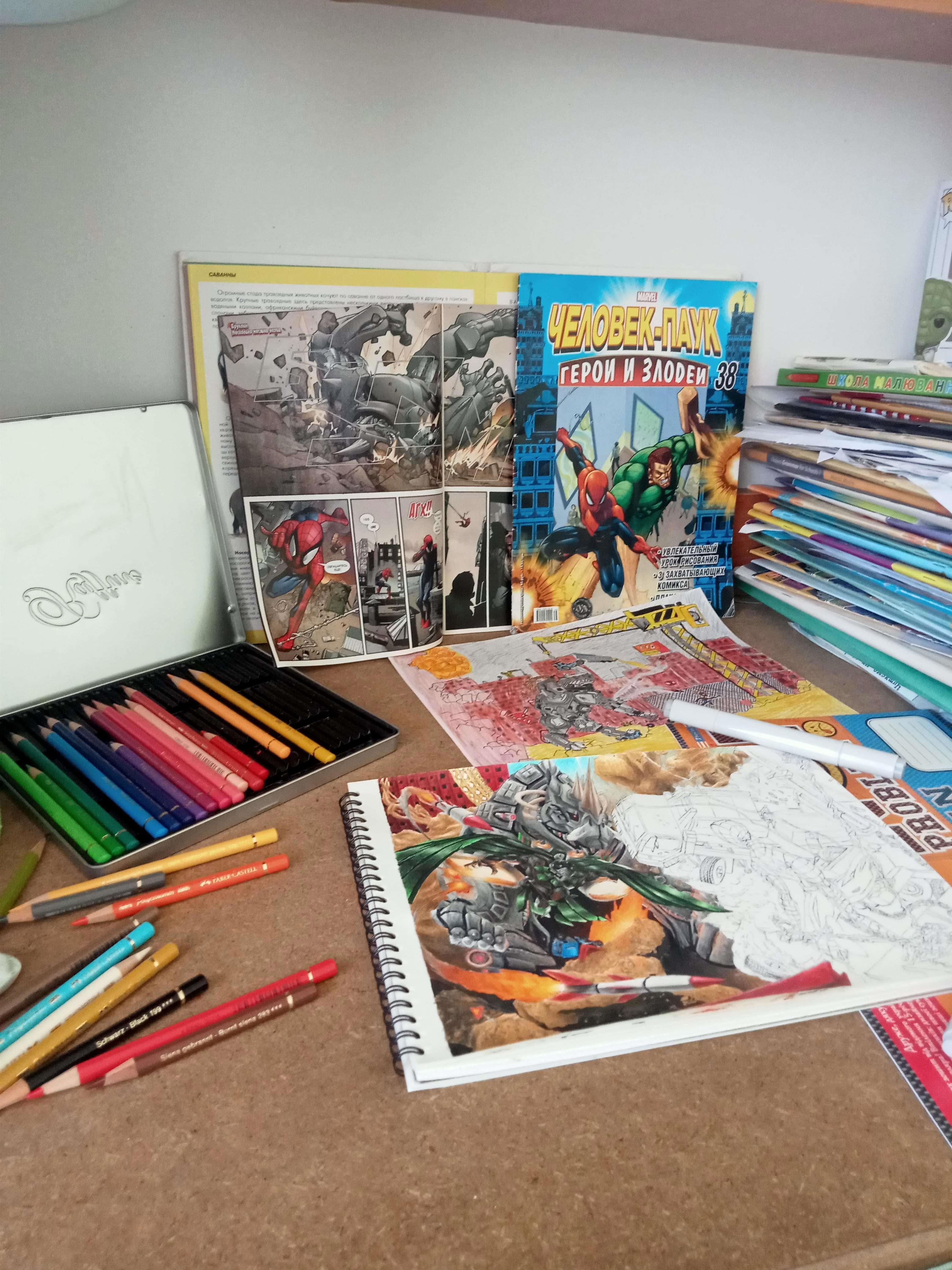 Запечатлела самый пик работы над идеей. Рабочее место не мое, а сына. Ему — пятнадцать, и его всё ещё восхищают суперзлодеи вселенной Marvel.