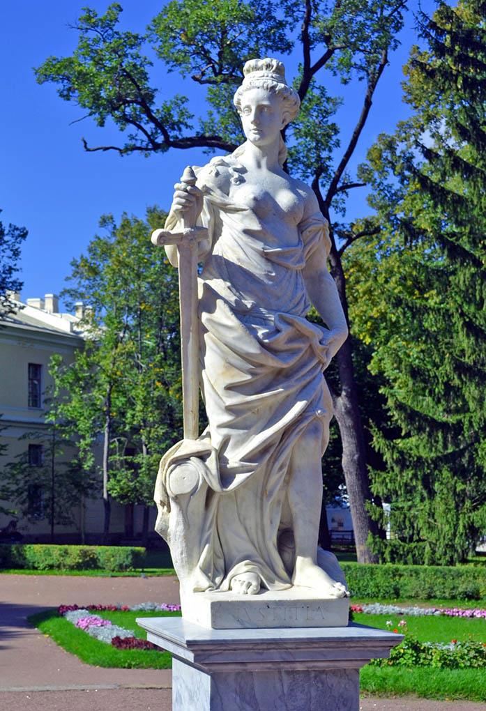 П.С.: фото императора у меня, конечно нет. Но вот фото скульптуры, которую от приказал поставить в дворцовом парке. Видно, что лицо девушки отличается строгой красотой, а в руке она сжимает мечь, как и подобает настоящей воительнице