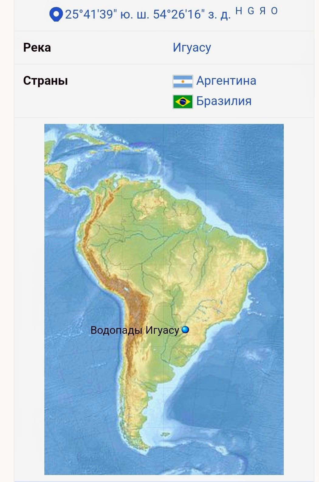 Водопа́ды Игуасу́ — комплекс из 275 водопадов на реке Игуасу, расположенный на границе Бразилии (штат Парана) и Аргентины (провинция Мисьонес). Водопады находятся на границе аргентинского и бразильского национальных парков «Игуасу». Оба парка были включены в список Всемирного наследия ЮНЕСКО (в 1984 и 1986 годах, соответственно). Название Iguazú (Игуасу) происходит от слов на языке гуарани y (вода) и guasu (большой).