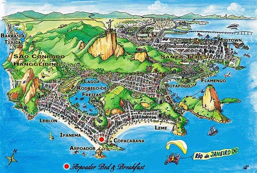 Туристическая схема города. В самом низу в центре видна дуга Коракабаны. А слева от нее другой знаменитый пляж. Ипанема.