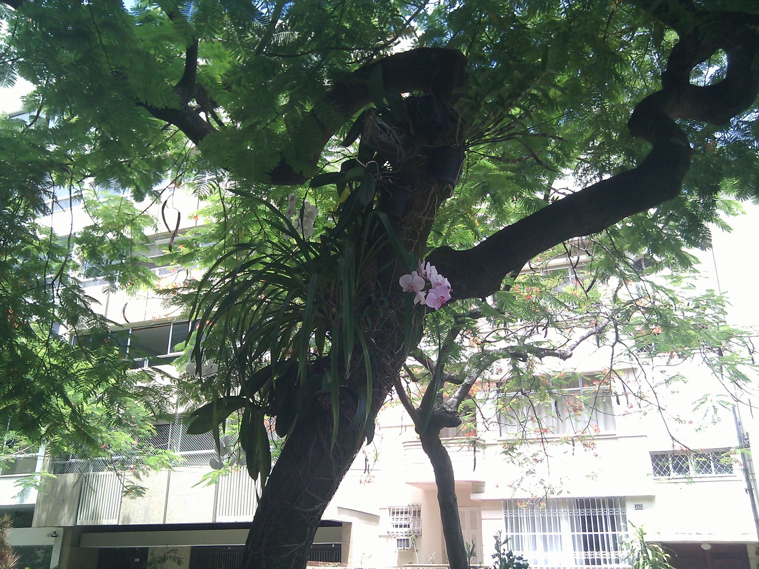 Вот так растет орхидея в естественных условиях. Уютненько устроиилась на дереве. Впрочем там еще какое-то растение тоже пристроилось (судя по листьям, похоже на лилию). В бразилии высокий уровень преступности и более дорогие дома ограждены высокими металическими заборами и иногда даже колючей проволокой. Первые этажы все оборудованы крепкими решетками.
