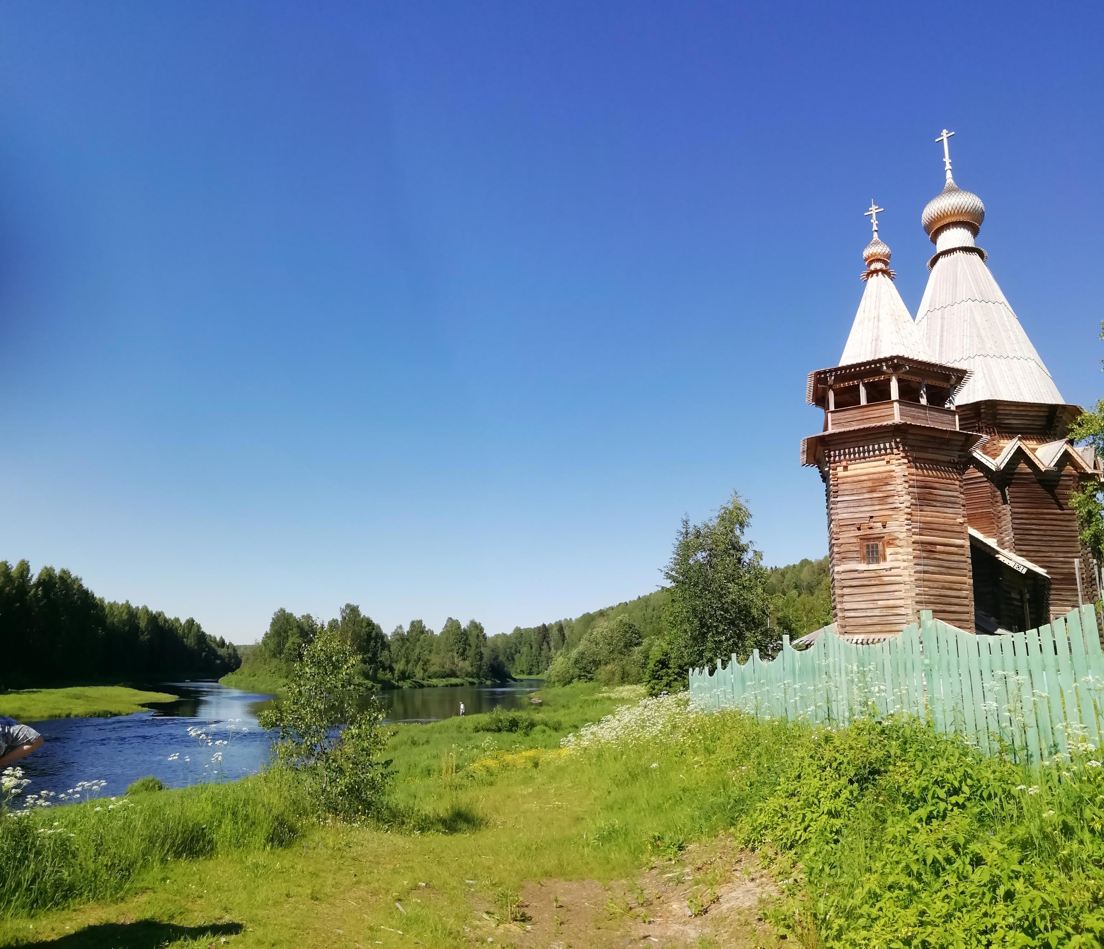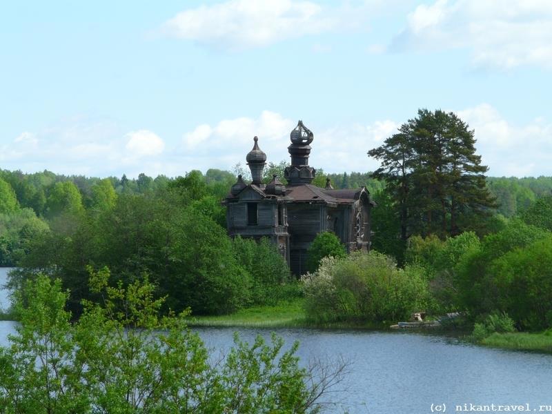 В этот раз подобный снимок сделать не удалось - берег реки Важинки зарос травой чуть не в человеческий рост, а саму церковь довольно плотно окружают разросшиеся деревня...