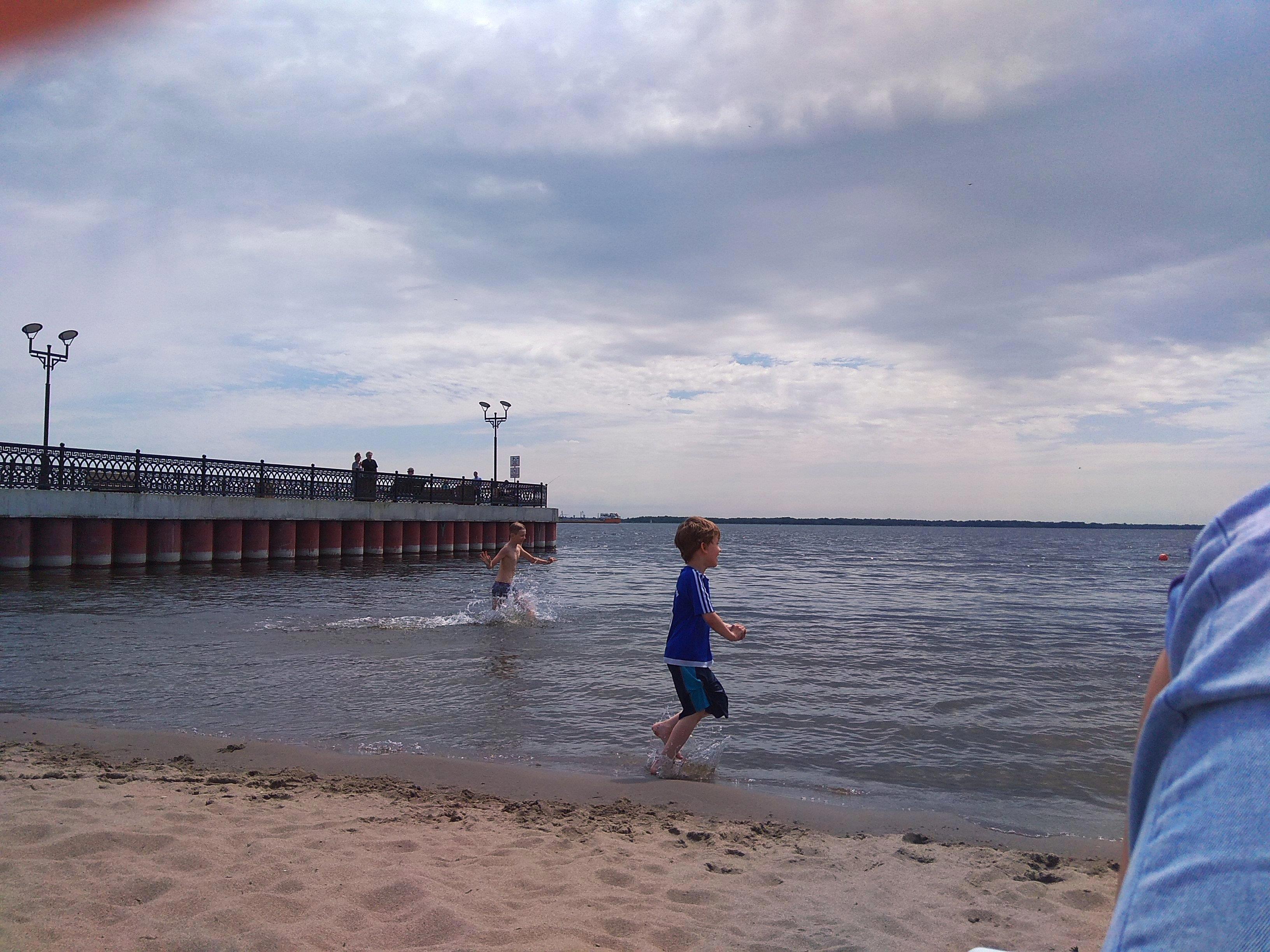 Очень пожалела, что не захватила с собой купальник. Пришлось погулять по Волге, закатив джинсы. Воздух прогрелся до двадцати семи, стало жарковато, хотя ветер был холодным. Отдохнула на шезлонге, полакомилась мороженком под названием "Обамка". Это такая шоколадная вкусняшка с забавным негритенком на упаковке))