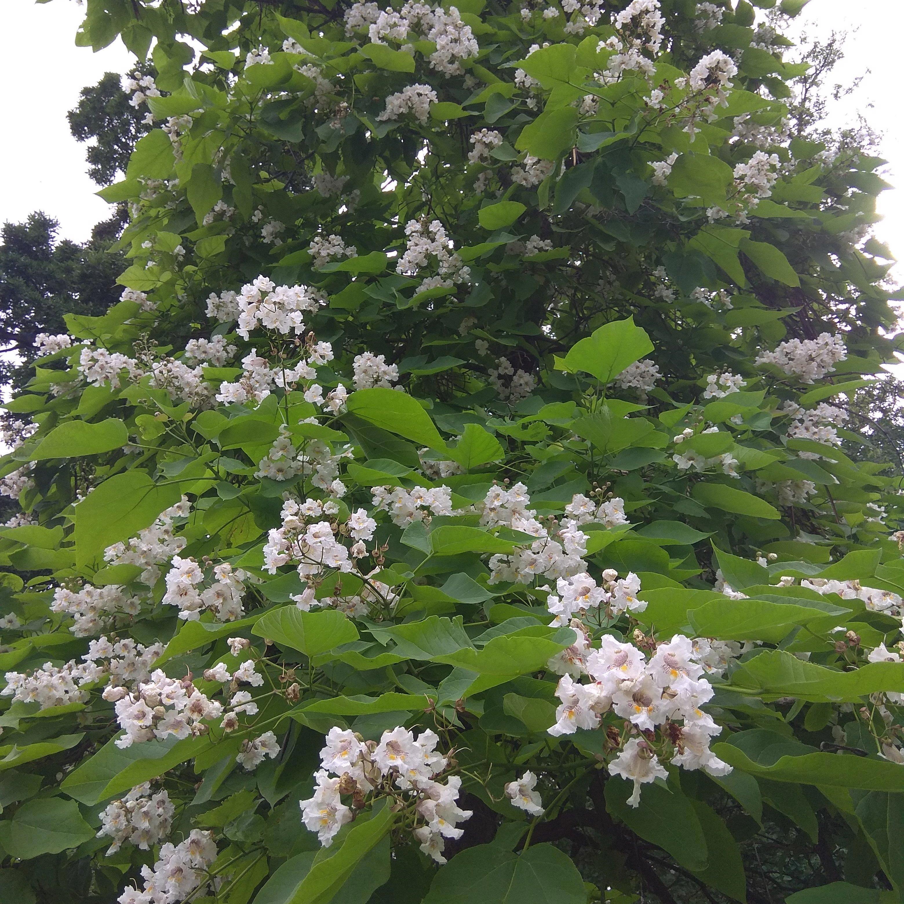 В кадр попали и красавицы-катальпы со своими ароматными соцветиями