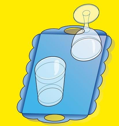 Вот например Поднос на котором стоит перевёрнутый стакан. А рядом на столе стоит бокал.