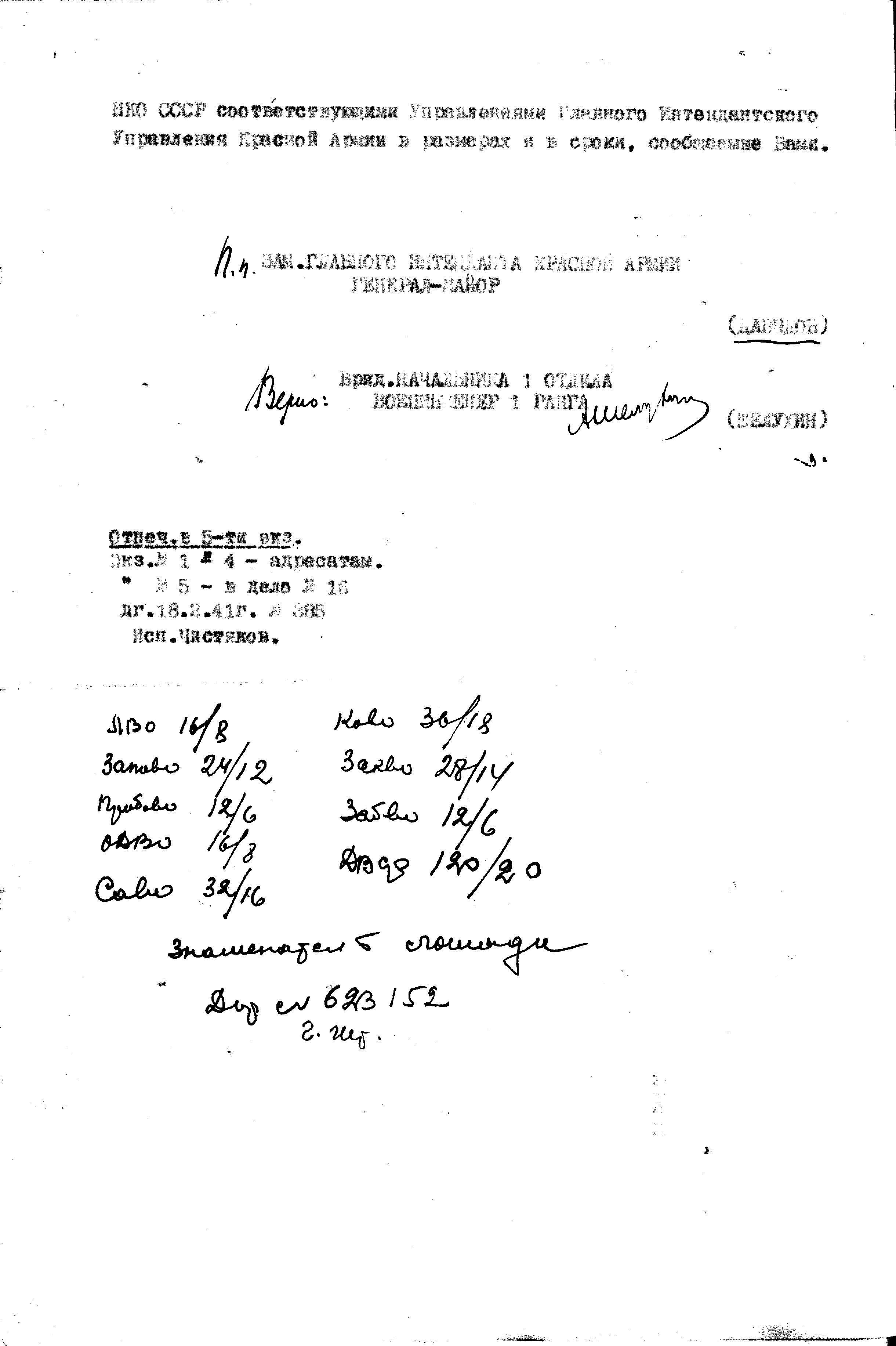 Как ни странно, несколько таких документов действительно нашлось. В частности, указание Главного Интенданта Красной Армии начальникам снабженческих управлений.