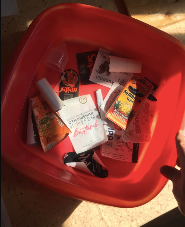 С первым пунктом я справился легко — сварить кувшин черной жижи не сложная задача. Но вот потом пошли сложности, добрался я до «истории моего цирроза», а именно до отклеенных этикеток. Одни сменил в тазу, другие отправил сушиться. Вот так это выглядело:
