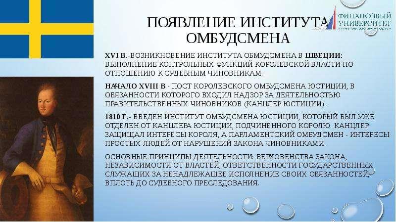 Институт это пришел из Швеции, где был окончательно узаконен в 1814 году. Затем, как это водится, стал распространяться на другие страны.