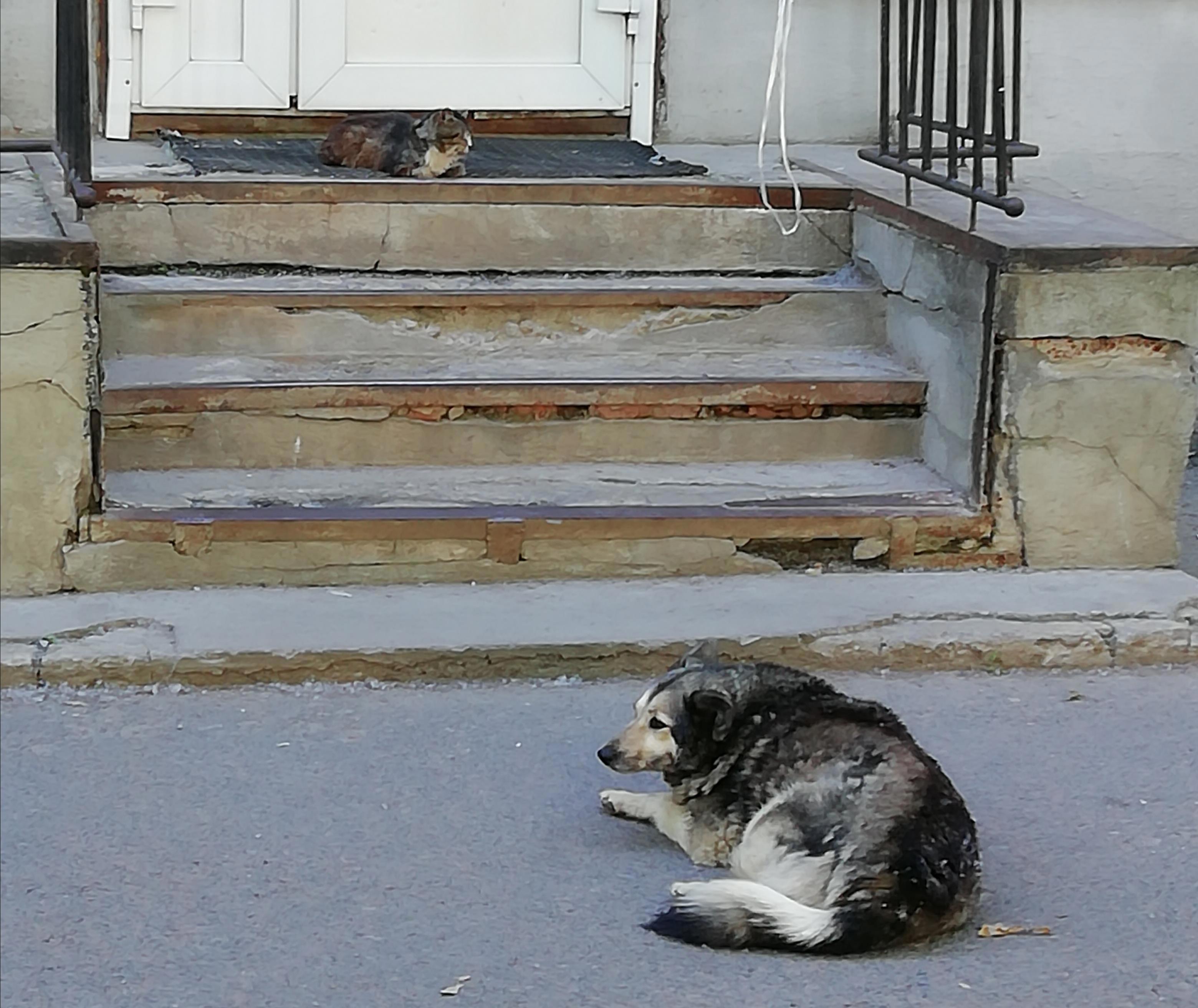 Кстати, на фото отлично видно, что котики в иерархии близости к мясу гораздо выше пёсиков