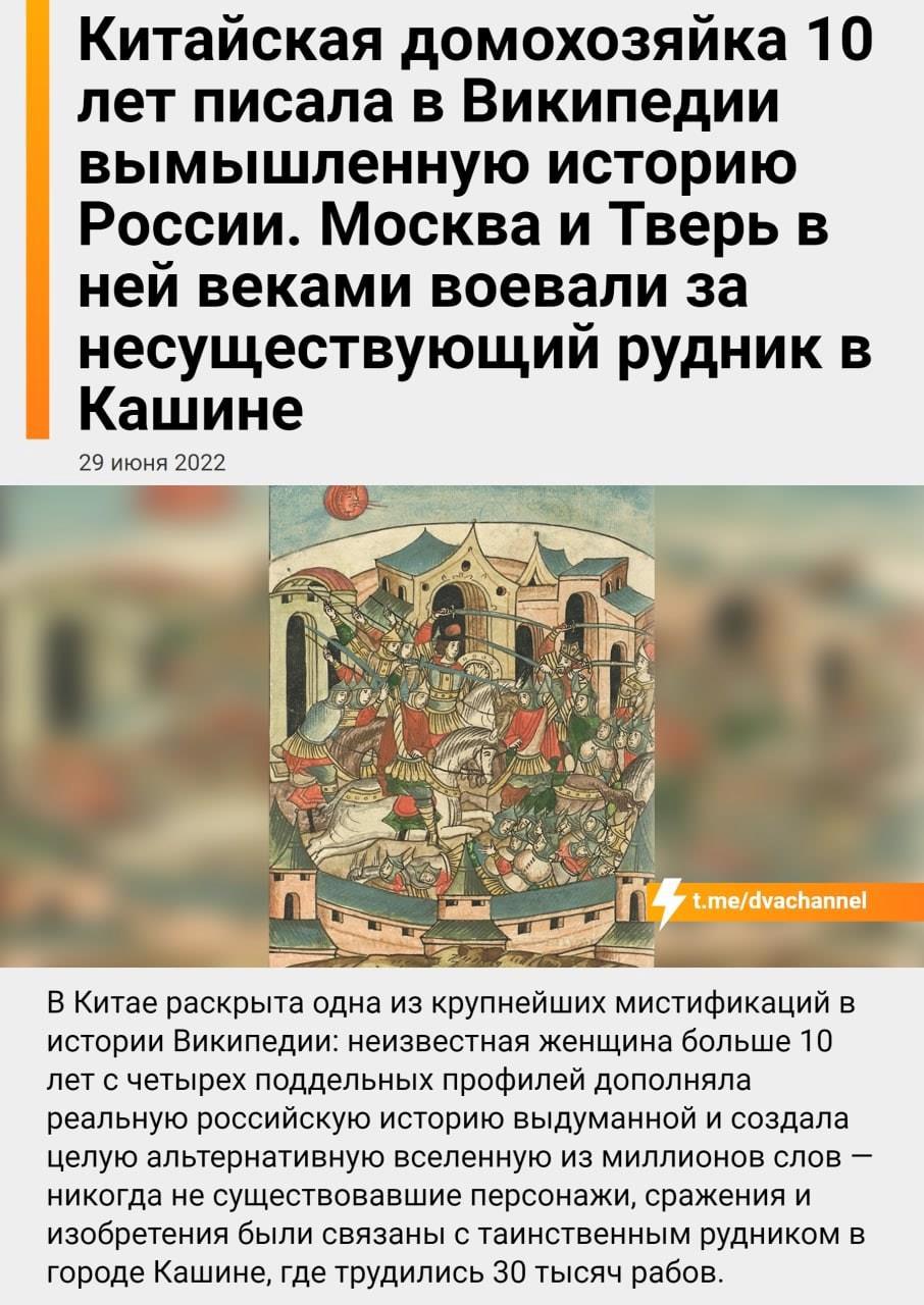Одна китаянка под ником Чжэмао (折毛) около 12 лет создавала фейковые статьи в Китайской википедии по истории России, компилировала правду с полуправдой и своей дикой фантазией, подставляла при этом авторитетные источники на русском и китайском, эти статьи затем переводились на другие языки. дополнялись, редактировались и в итоге на глаз невозможно понять, что в статье правда, а что ложь. При этом девушка не знает русского (ранее лгала, что родители - дипломаты).