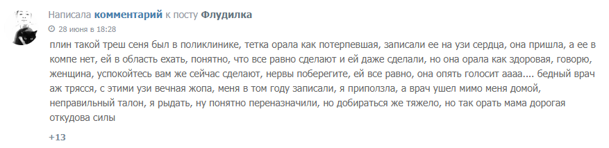 Я этого ничего не знала и не смотрела, "врач сказал надо, пациент пошел и сделал", пришла по времени и оказалось, что нужно было еще утром поставить катетер в вену. Поднялась на 4-тый этаж в нашу процедурную, а медсестра сказала мне "время 17.00 я ушла час назад и просто буду запирать двери, чтобы не ходили и не просили", на все просьбы пойти на встречу так как я не знала и мне нигде никто не написал, что это нужно, категорически нет и все, а мне ехать в область с результатами (помните ситуацию с узи и тетенькой, которая орала, которой тоже надо было в область, вот, вот я припомнила, потому что не суди и не осуждай ты другую тетеньку)