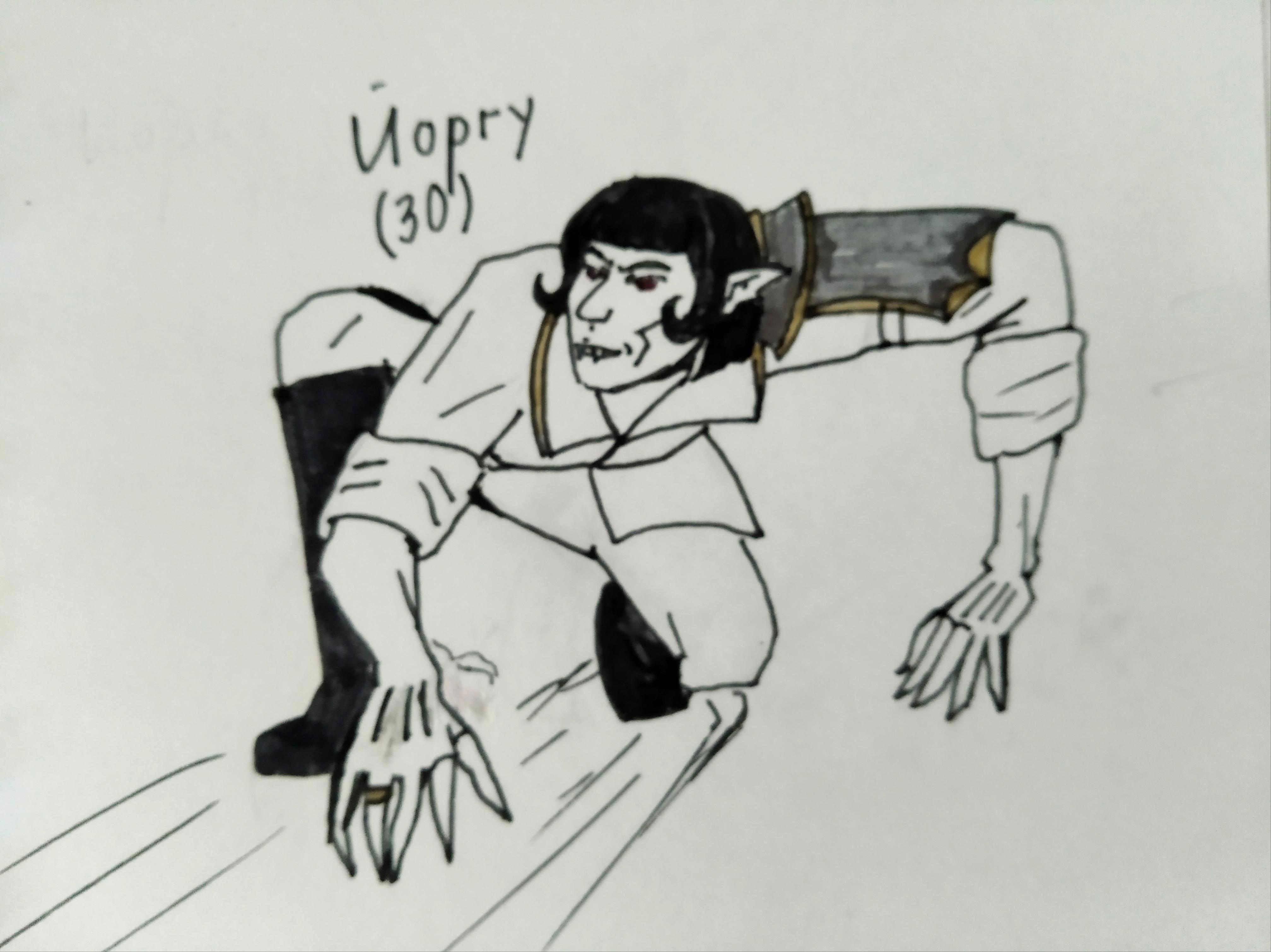 Вампиры и в оригинале способы бегать на четырех конечностях. С помощью снорка в виде рефа, нарисовался знакомый товарищ, даже имя получил