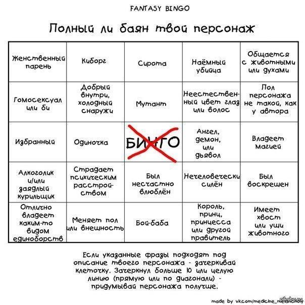 Но я скажу даже больше, если у вас зачёркнуто больше трёх, то ваш персонаж, как и, вероятнее всего, само произведение–редкостнейший мусор.