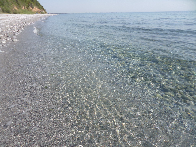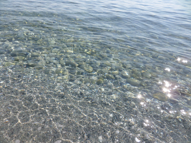 А тут пока все встали, позавтракали, собрали свои морские пожитки, уже и солнце палить начало. Еще и поехали чуть за город, там пляж диковатый, каменюки, чуть копыта не обломала, зато вода кристальной чистоты и прозрачности. На камнях ежиков видно. Хорошо, что хоть видно, а то не дай бог наступить на такое чудо природы. Пронзает аж до костей своими колючками.