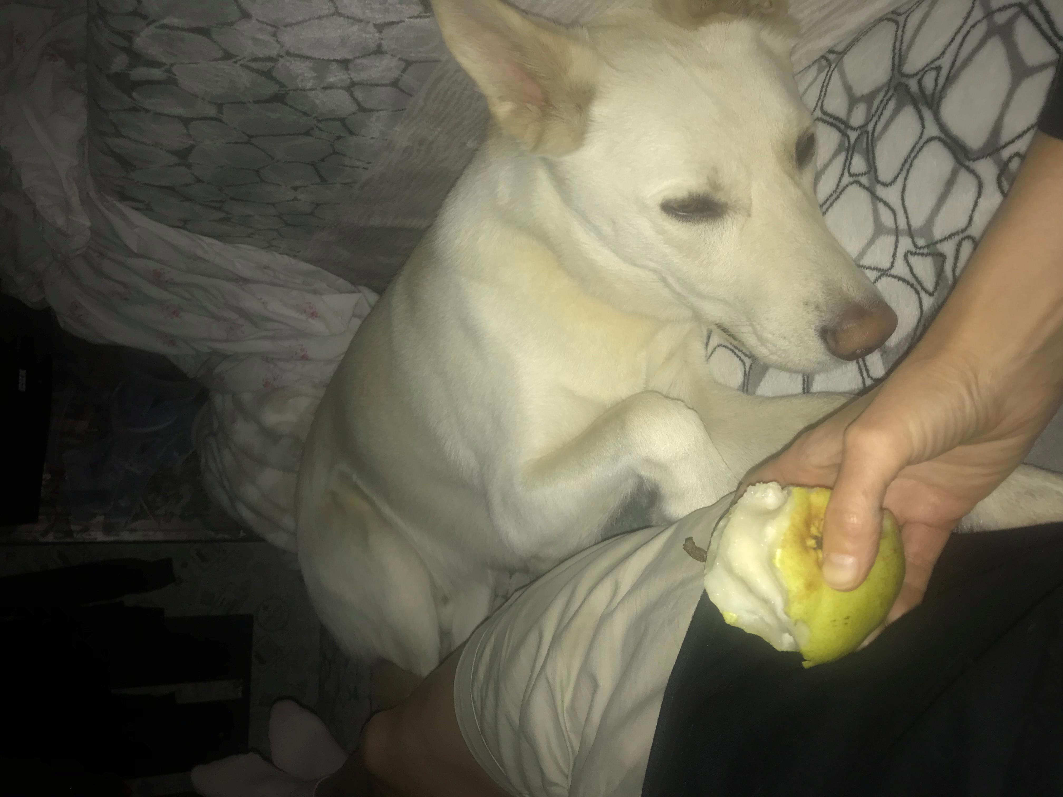 Он долго смотрел как я ее ем. На грушу. Потом мне в глаза.. потом понял, что я ничего не поменяю с едой и смирился))))