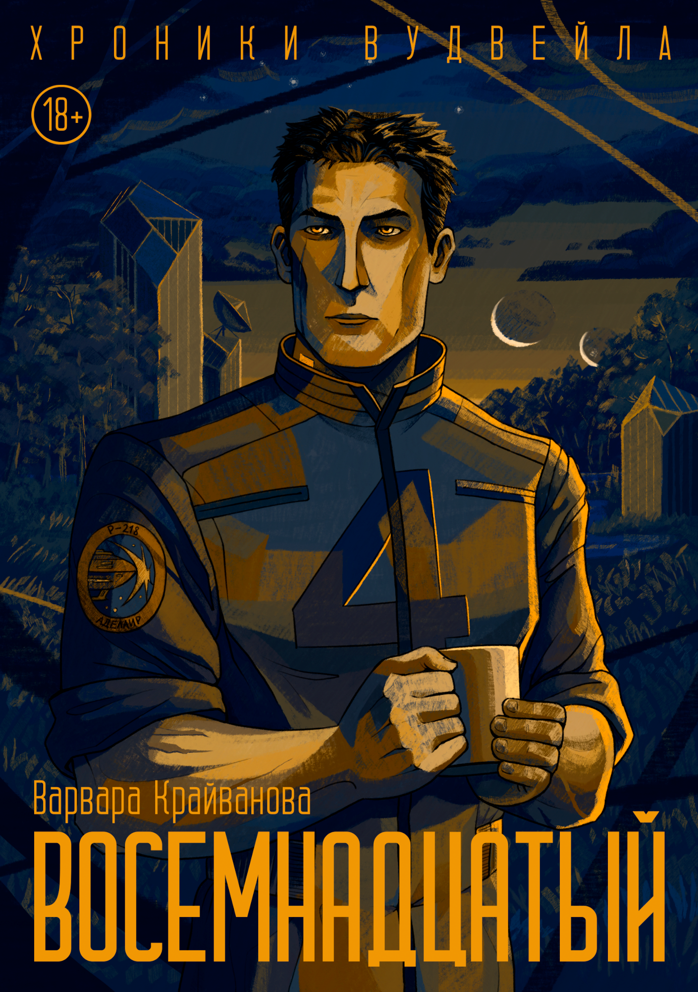 И я поняла, что художник нашелся! Написала Анастасии, очень обрадовалась, когда она согласилась взять заказ. А потом случилась проблема: про обложку я знала только три вещи: на ней должен быть главный герой, она должна быть синей с желтым, и в стиле советских плакатов. Процесс поисков был непростым, и я очень благодарна художнице за внимание к деталям и моим правкам-хотелкам. Работа над обложкой началась, когда было написано всего шесть глав из десяти, и каждый эскиз невероятно помогал моему вдохновению. Одно дело - видеть своих героев в голове, и совсем другое - глазами.