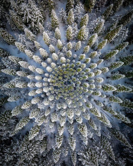 Это не природное явление, а дело рук человека. В Блоджетт Форес у подножья горного хребта Сьерра-Невада в Северной Калифорнии, США деревья были высажены в таком порядке в 80-90-х годах. Это часть исследования, посвященного изменениям, которые происходят с деревьями при тесном соседстве друг с другом. Так, секвойи в центре заметно короче тех, что растут по краям, хотя они одного возраста. Автор фото: Joseph Dondelinger / josephdondelinger.