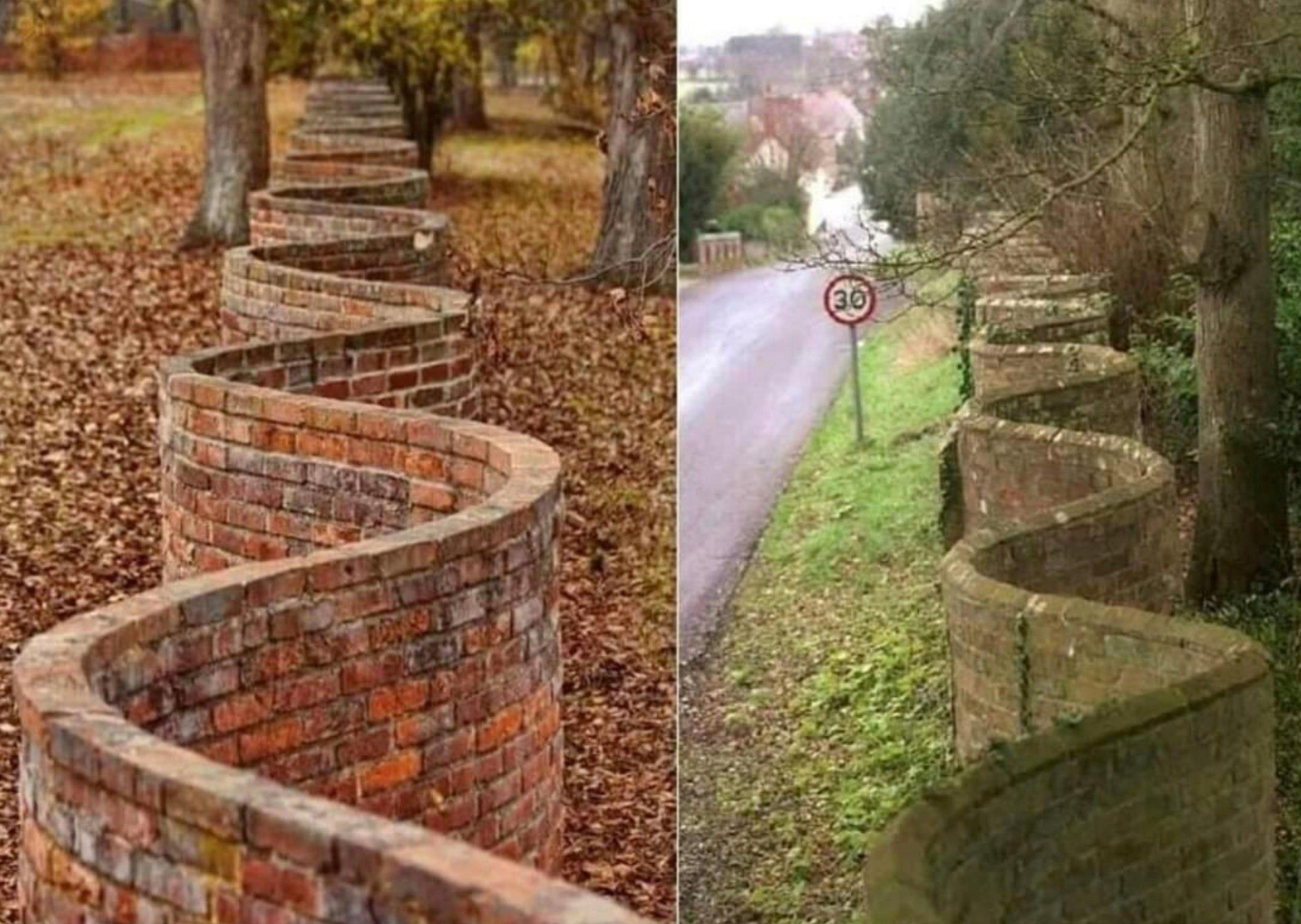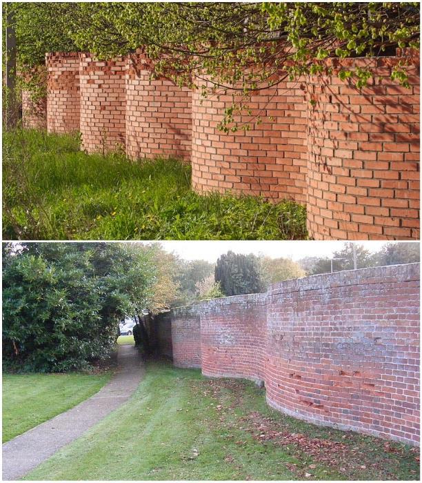 Прогуливаясь по улочкам небольших городов Великобритании, можно увидеть необычные заборы, которые строят из стандартного кирпича, но при этом они не прямые, как обычно, а волнистые, более известные как crinkle crankle walls, или серпантинные стены. Казалось бы, эстетика эстетикой, но зачем так нерационально использовать стройматериал? Как оказалось, таким образом владельцы больших участков кирпичи... экономят. В это сложно поверить обычному обывателю, но профессионалы знают в чем секрет. Как ни странно, для такого волнистого забора требуется меньше кирпичей, чем для прямого. Чтобы прямой забор был достаточно прочным, нужно выложить его как минимум в два слоя, либо он просто рухнет от легкого толчка. Волнистый же забор обеспечивает арочные складки, благодаря чему очень даже крепок и в один слой и без дополнительных подпорок.