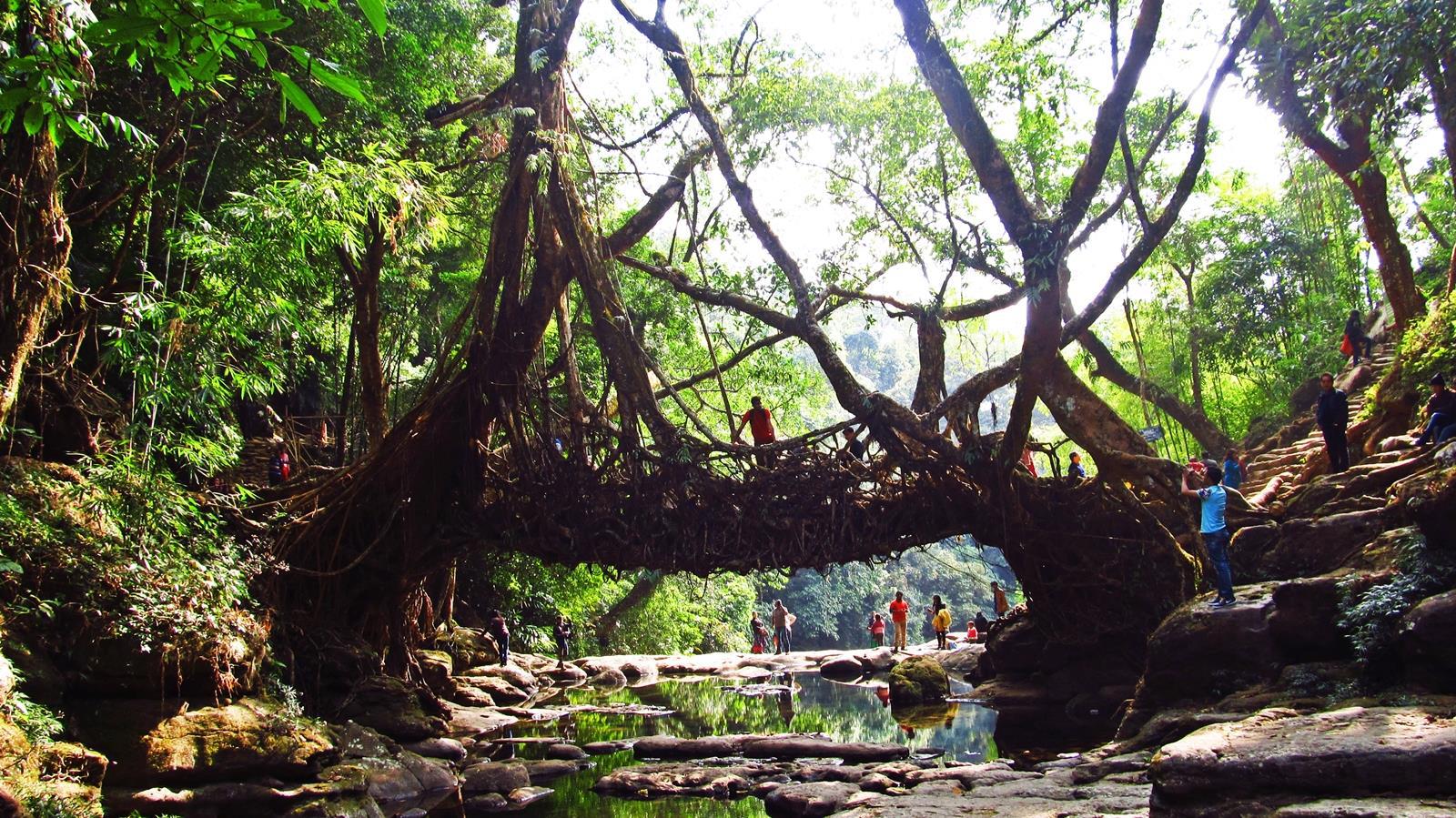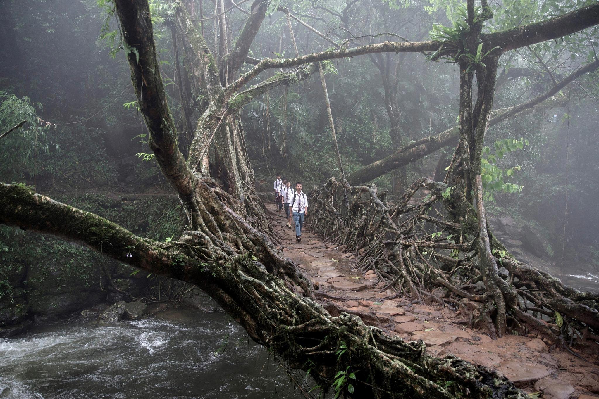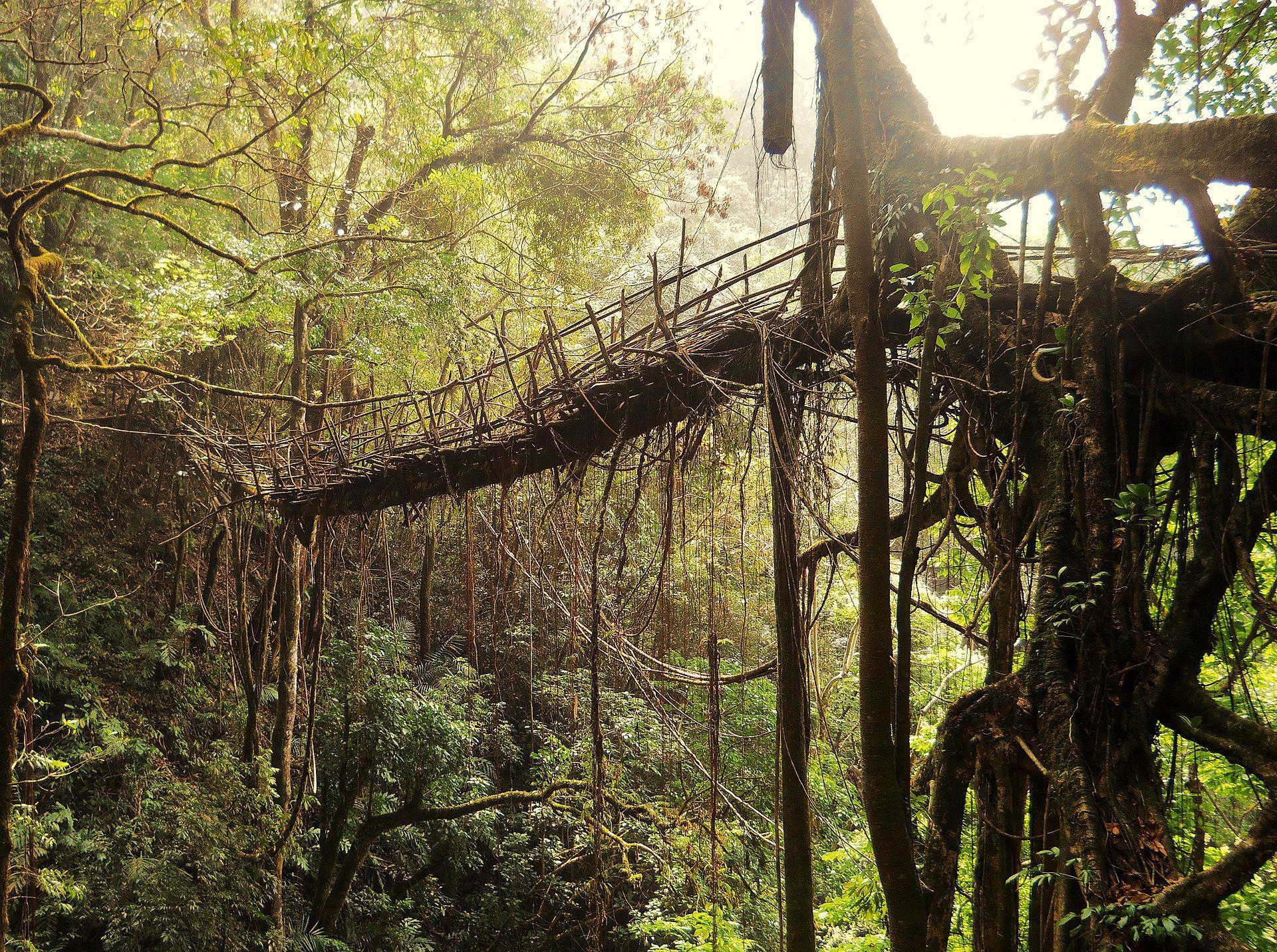 Так называемые "живые" мосты можно увидеть лишь в одном месте планеты, на востоке Индии. Здесь около Гималаев в штате Мегхалая племя кхаси поколениями сохраняет уникальное искусство формирования прочных мостов без металла и рубки деревьев.