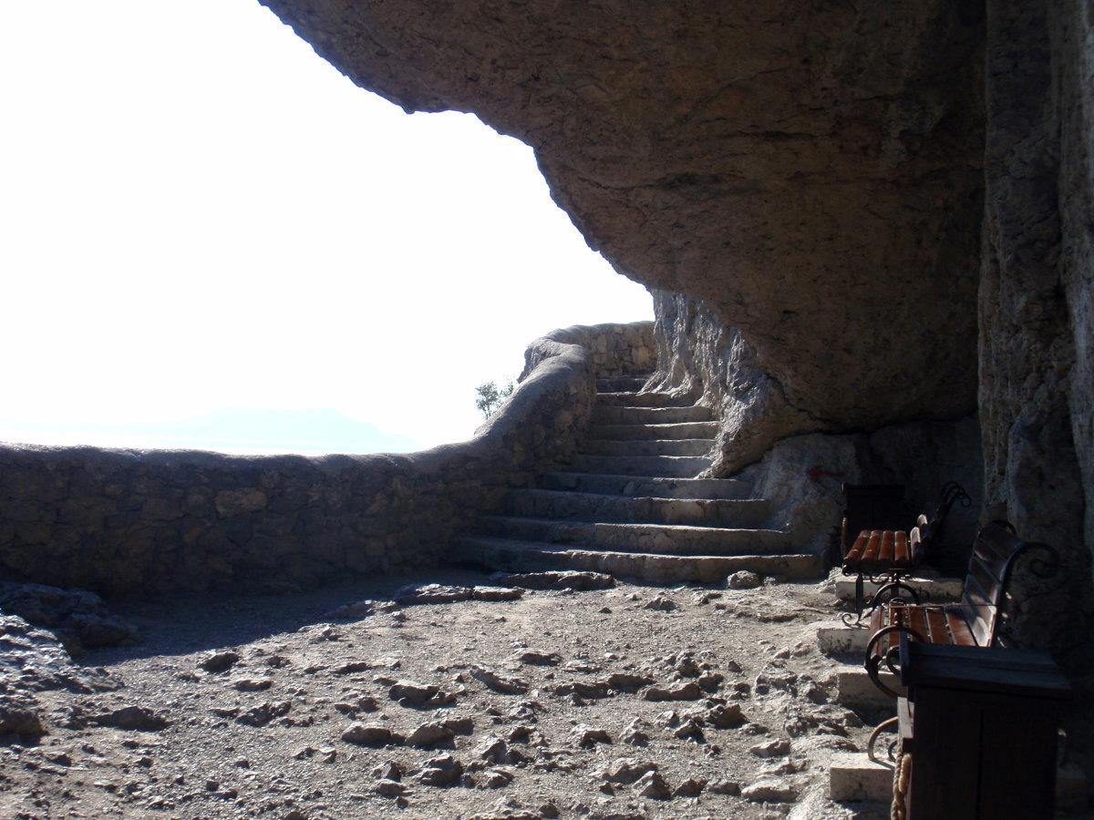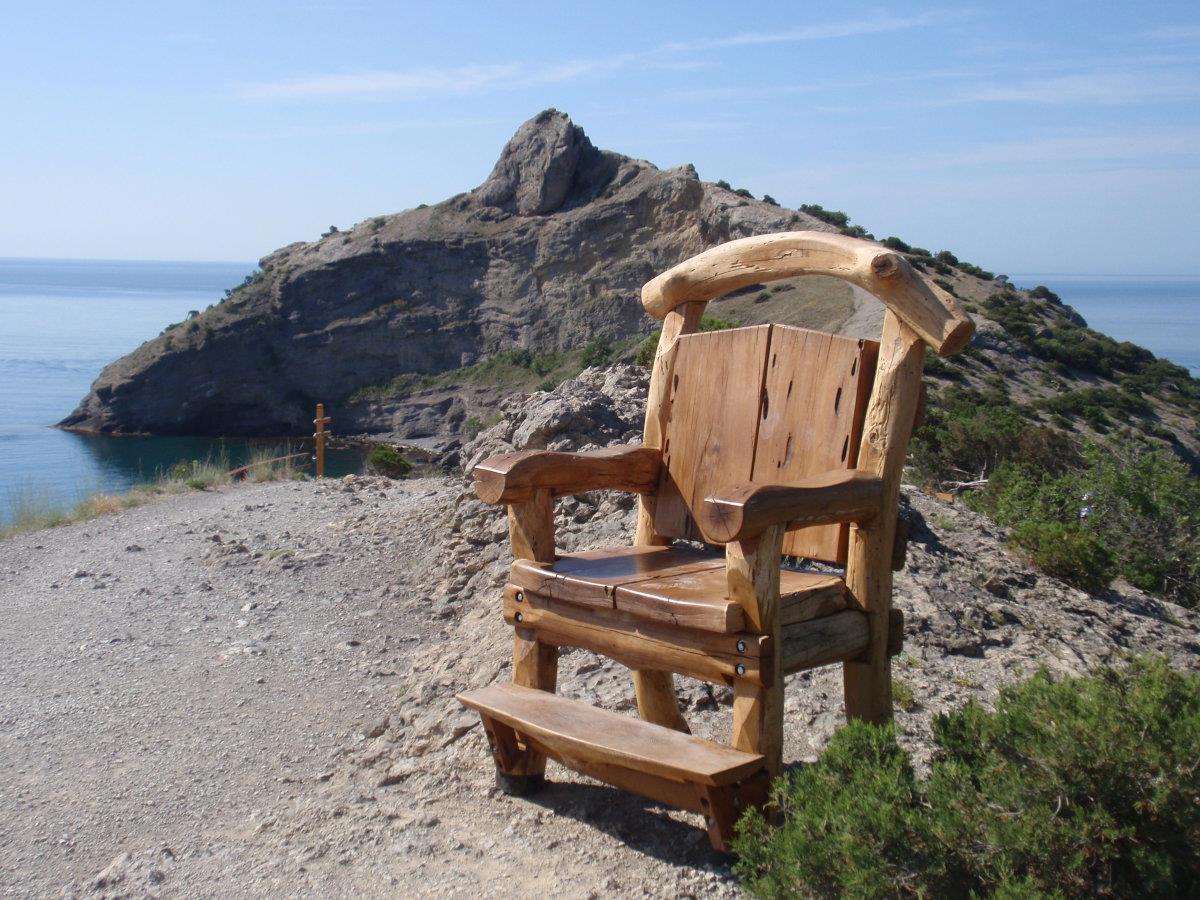 Дальше тропа ведёт к Синей (Разбойничьей) бухте, от неё – на мыс Капчик с его Сквозным Гротом. Добравшись до мыса, можно отдохнуть, полюбоваться первозданными видами, пофотографироваться на "троне" и прочем антураже.