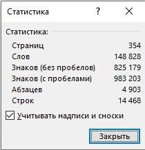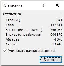 Как видите, по существу я ушел не далеко - все те же ~150т. слов (даже чуть меньше), чуть больше знаков, и чуть больше страниц. В основном, количеств страниц увеличилось за счет большего числа абзацев и строк. Думаю, понятно, что скорее всего это произошло из-за большего числа диалогов.