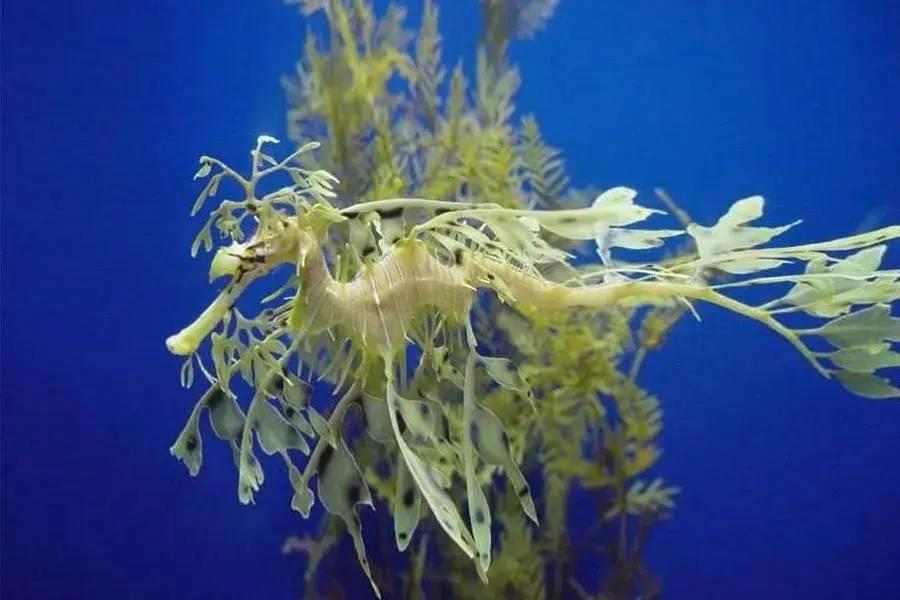 Этот ближайший родственник морского конька не имеет острых зубов или сильных когтей, с помощью которых он мог бы защищаться от хищников. Зато природа одарила его потрясающим камуфляжем. В случае опасности дракончик цепляется за водоросли, меняет свой окрас и становится совершенно незаметным для хищников. Это же свойство помогает ему охотиться на креветок.