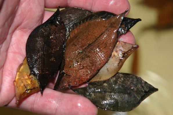 Рыба-лист из семейства полицентровые (Polycentridae) — очень интересная пресноводная рыбка с необычным внешним видом. Окраска рыбки очень изменчивая и во многом это зависит от среды обитания. Внешний вид рыбки помогает ей одновременно охотиться на жертв и скрываться от хищников. Формой тела и окрасом рыбка напоминает сухой лист дерева, плывущий по течению. Для усиления эффекта рыбка медленно дрейфует вниз головой, двигаясь с помощью прозрачных плавников. Но стоит только небольшой рыбке потерять бдительность и приблизится к такому «листику», хищник открывает свою необычайно широкую пасть и буквально всасывает свою жертву. Родиной рыбы-листа являются речные системы Южной Америки, входящие в бассейн Амазонки. Ее можно обнаружить в Бразилии, Перу, Венесуэле, Колумбии и Боливии. Максимальный размер рыбки — 10 см.